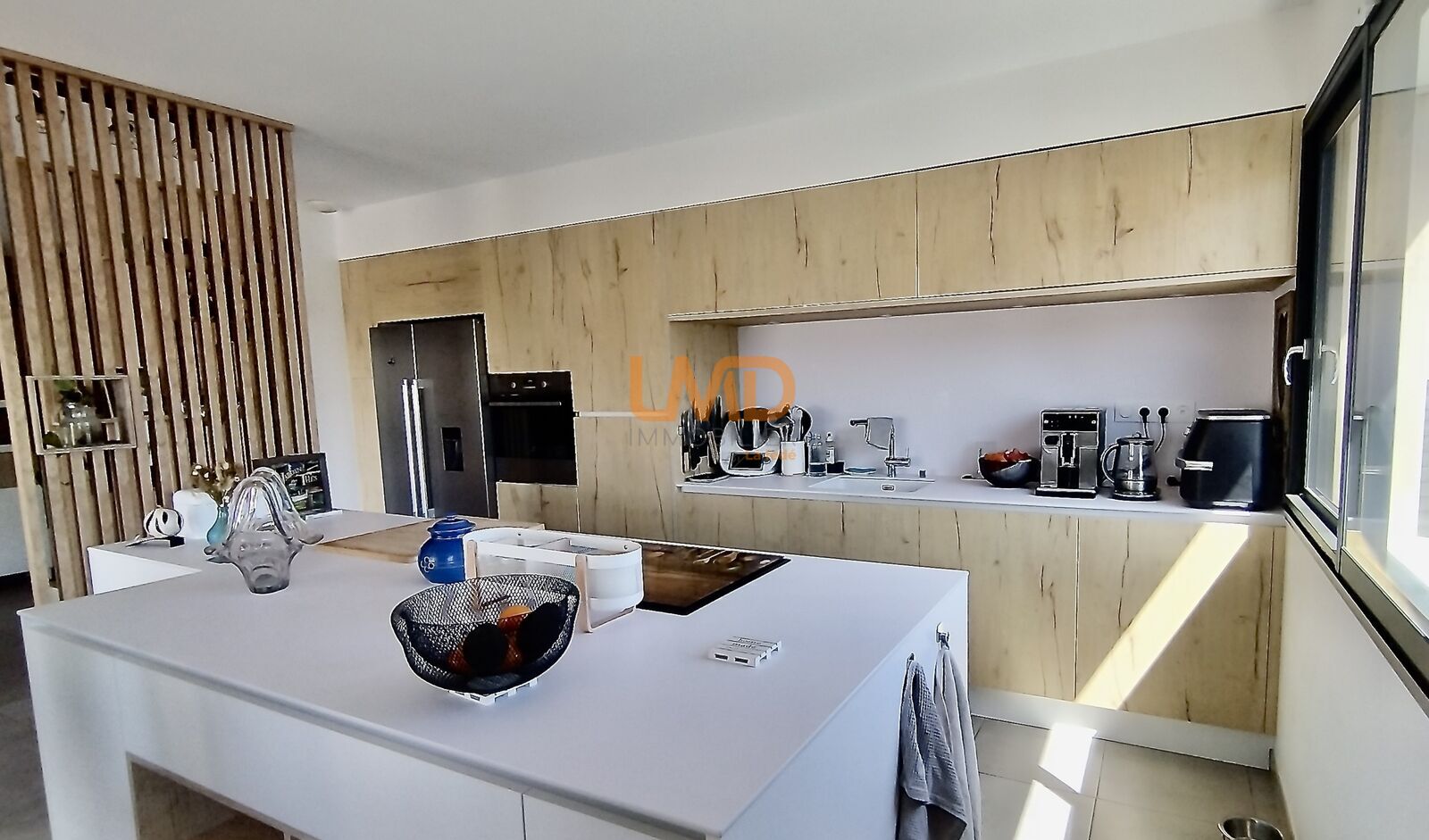 Une cuisine moderne et fonctionnelle, faisant partie du séjour, est parfaite pour recevoir ou profiter du quotidien en toute convivialité.