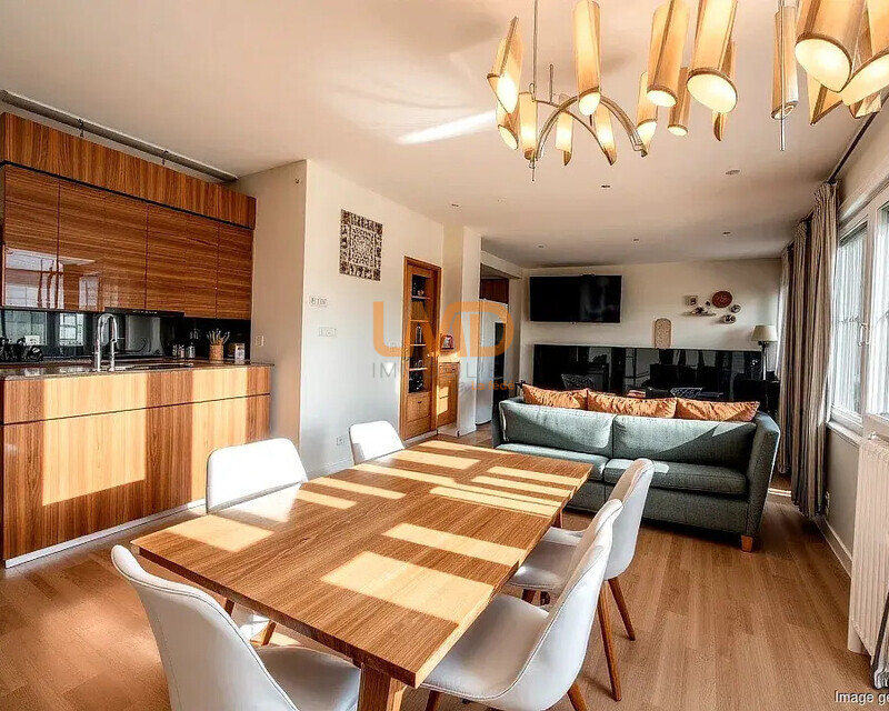 Le premier logement, d’environ 110 m², comprend une spacieuse pièce de vie lumineuse, une cuisine entièrement équipée, quatre chambres dont une chambre d'enfant, une salle d’eau récente et une terrasse agréable.