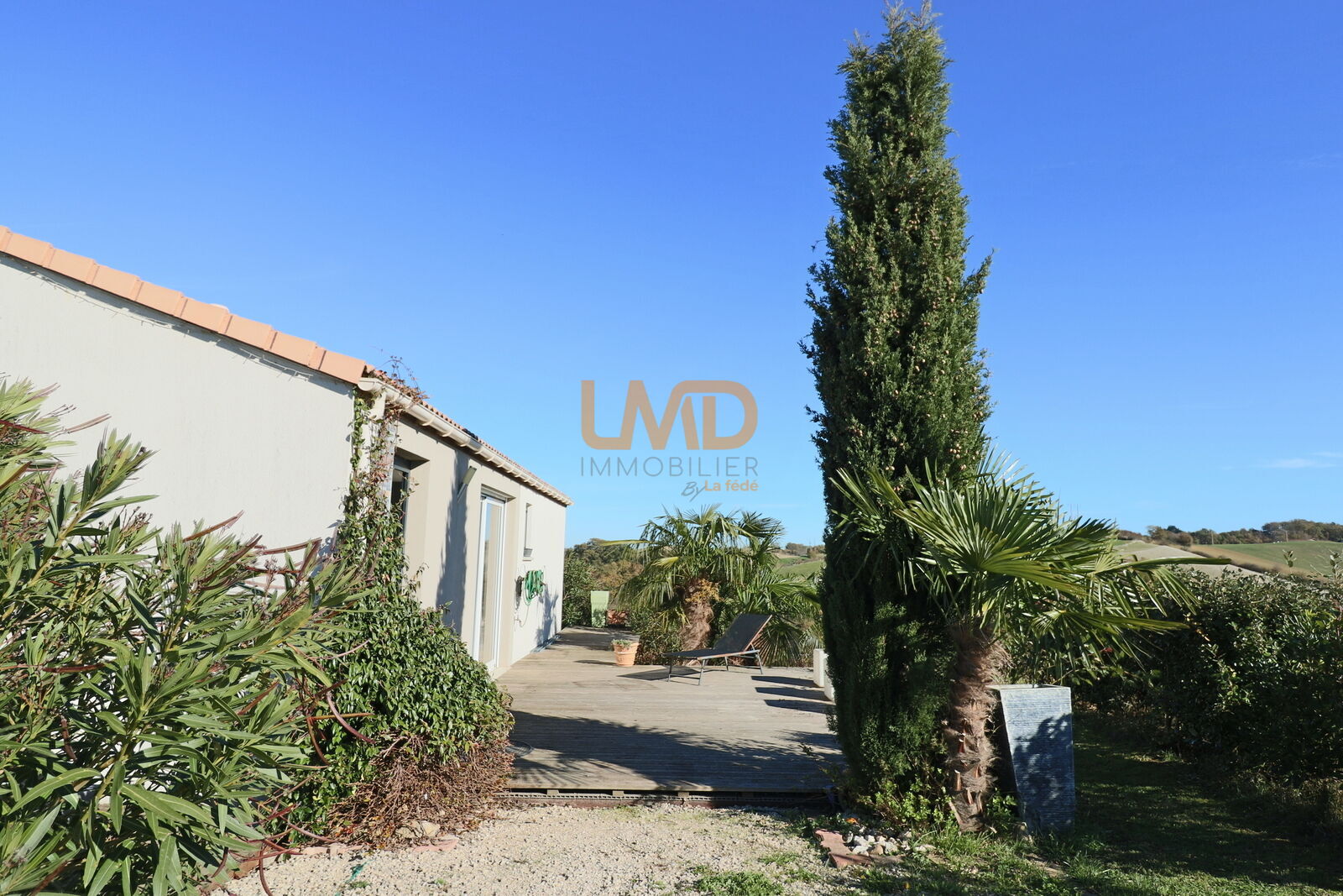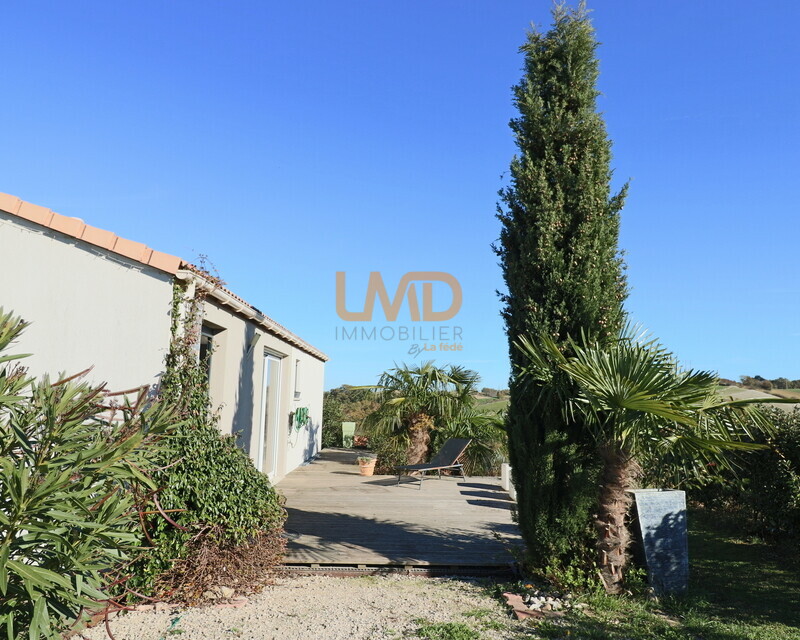 Point de vue exceptionnel sur la vallée et les Pyrénées pour cette maison de plain pied de Juin 2015 de 90 m2,avec 2 terrasses bois de 121 m2
