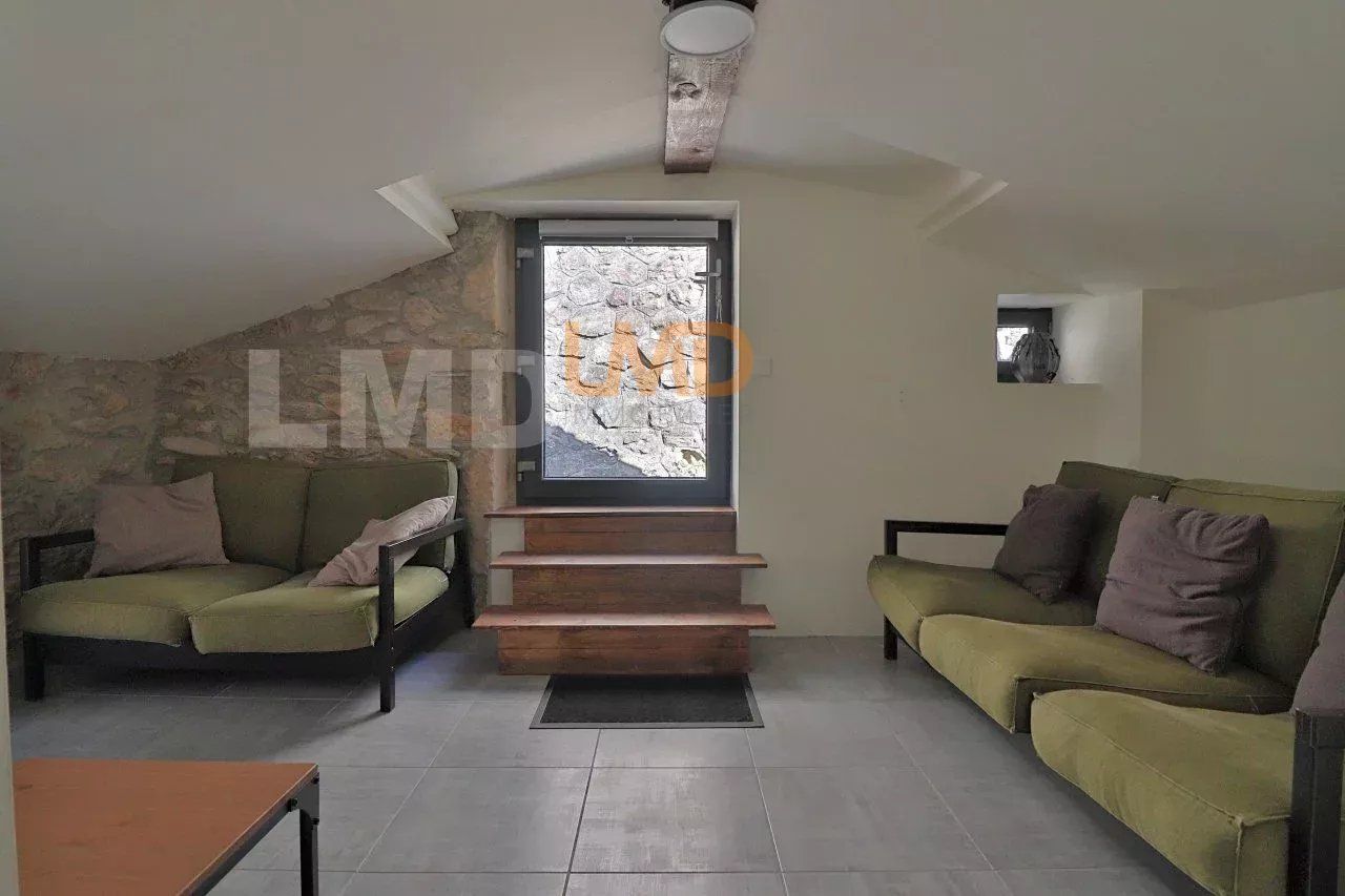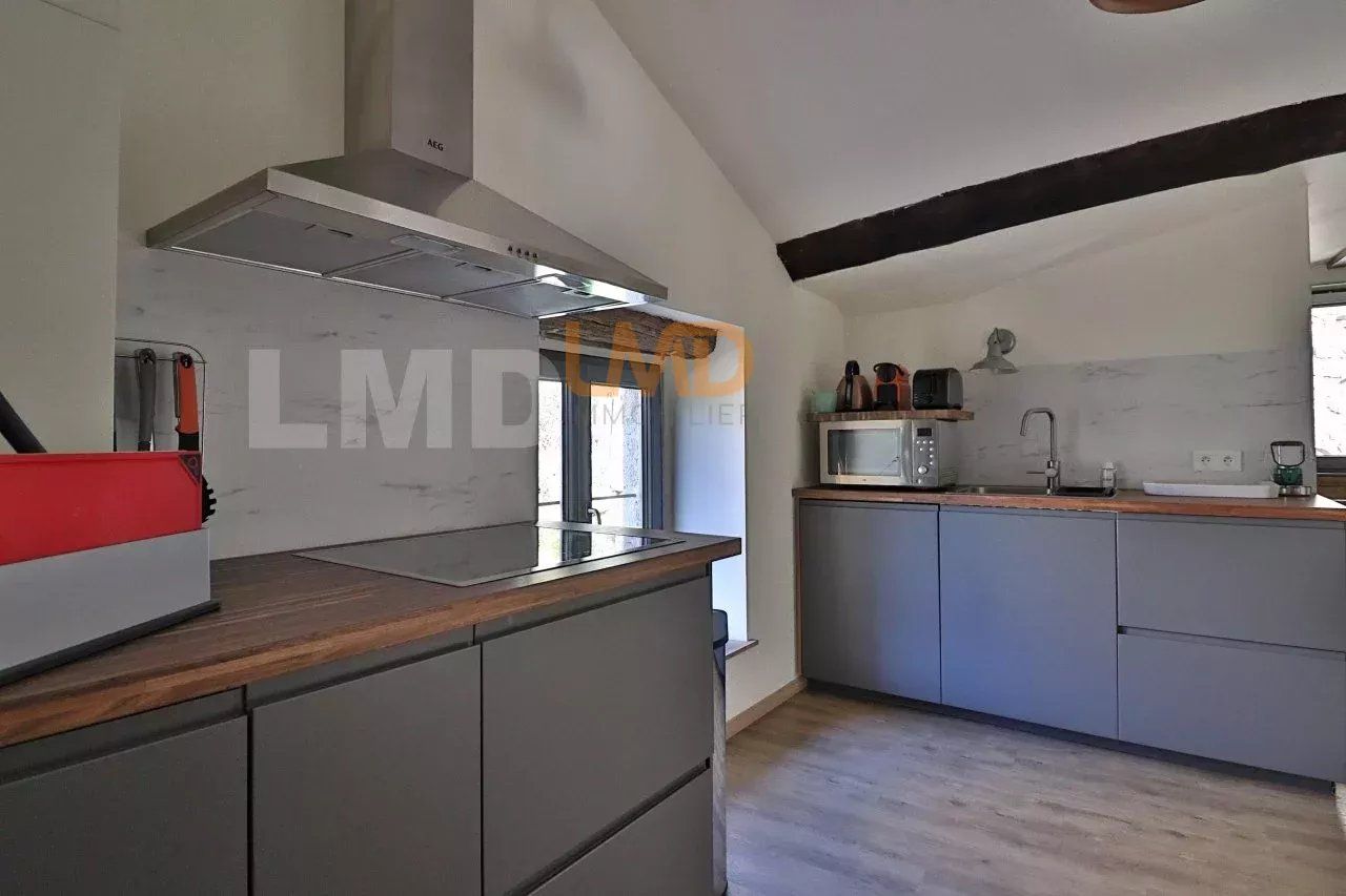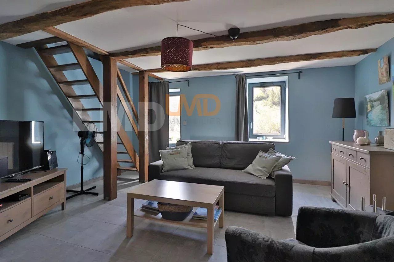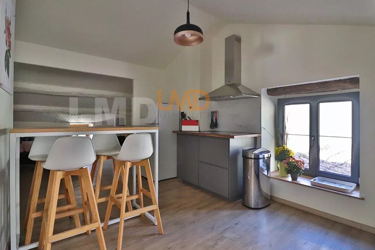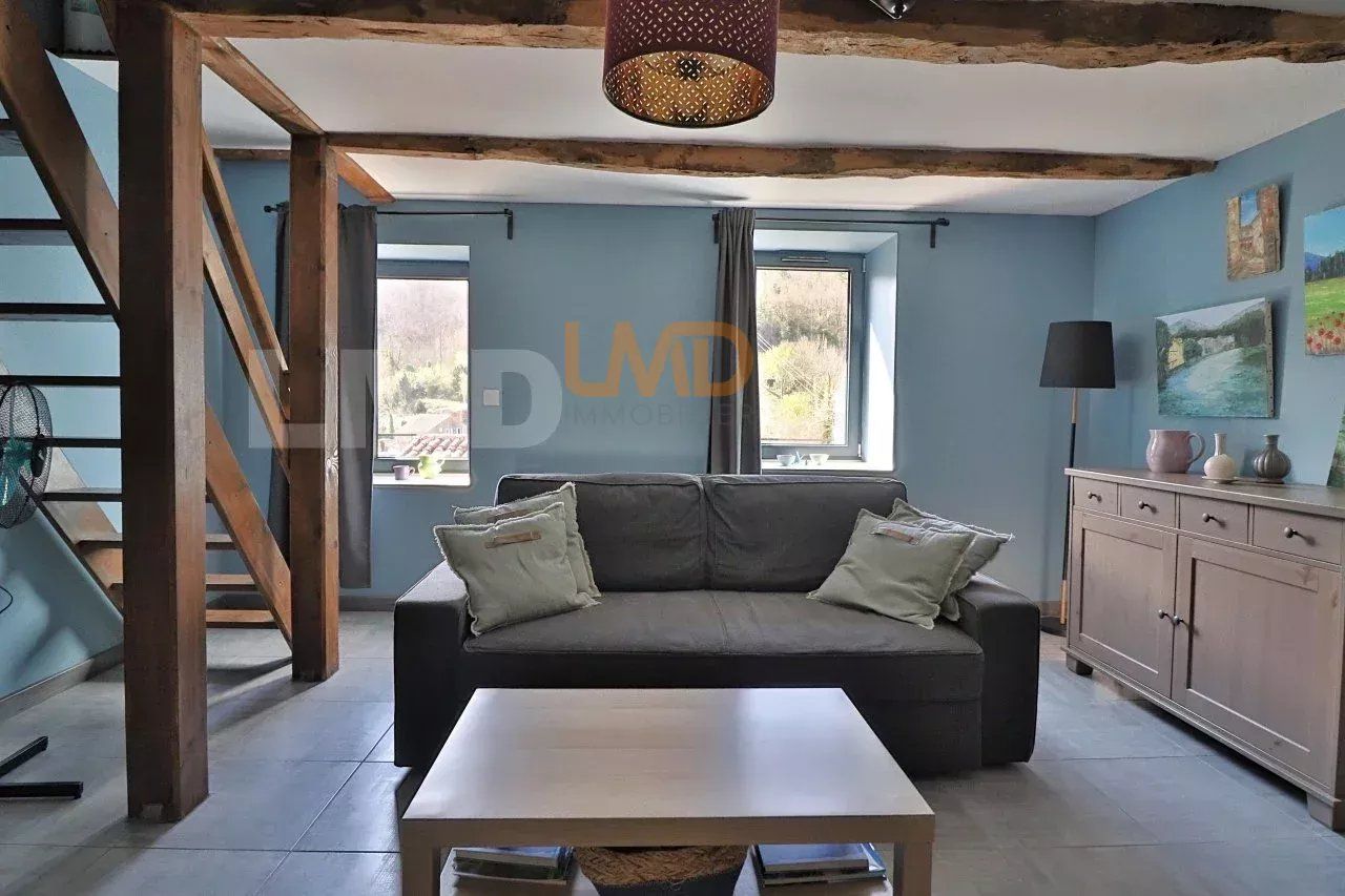 Appartement n°2: T2 d'environ d'environ 60m2 composé d'une grande pièce de vie lumineuse avec coin cuisine équipée ouverte, d'une chambre, d'une salle d'eau et d'un wc séparé. Une cheminée se trouve dans le coin salon. Ce logement dispose également d'une cour et d'une terrasse couverte d'une surface totale de 30m2 avec une superbe vue sur la nature.