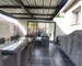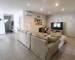 Spacieux séjour climatisé avec salle à manger et cuisine ouverte avec accès au jardin.