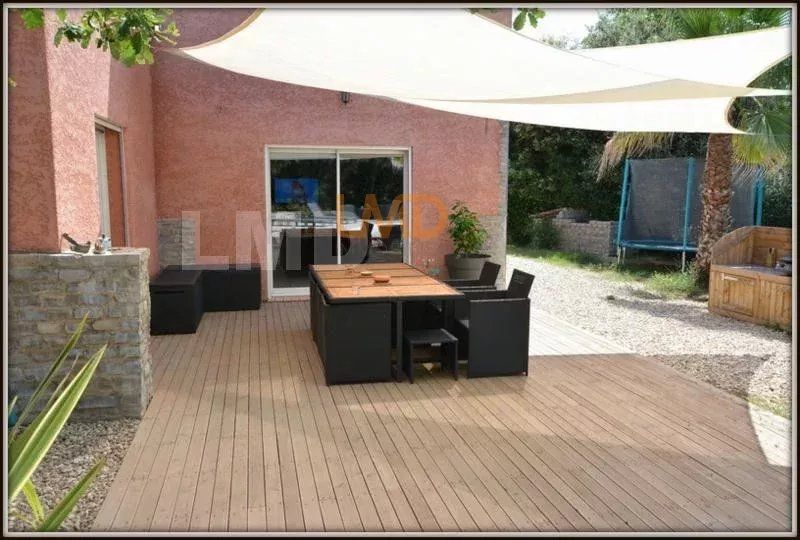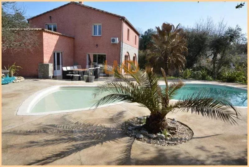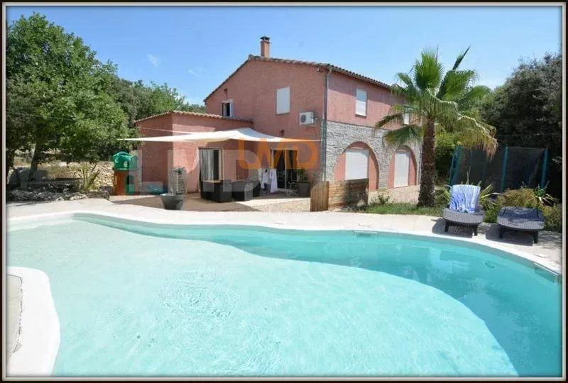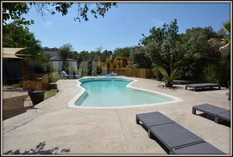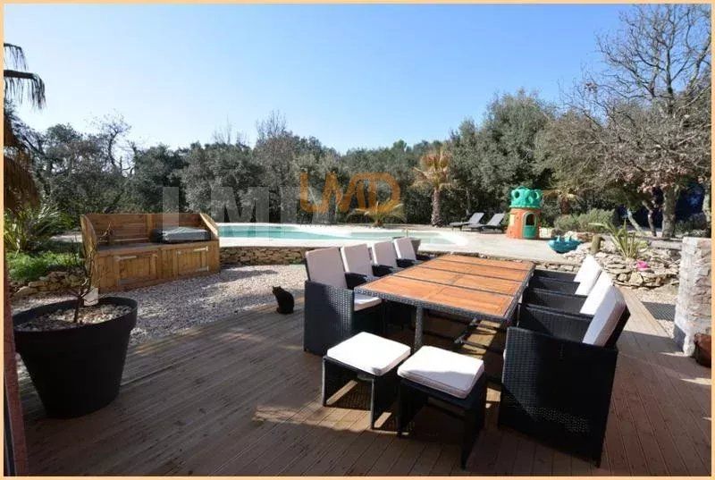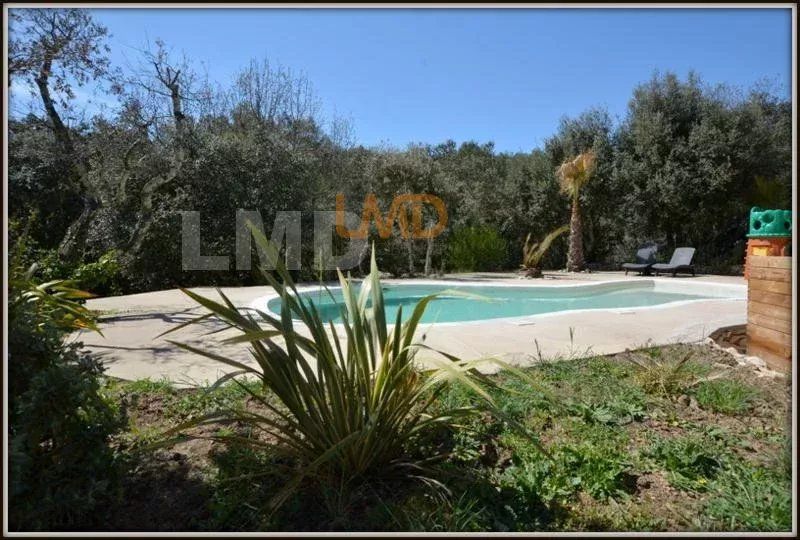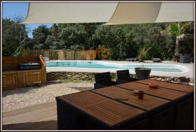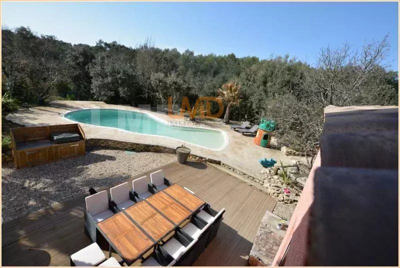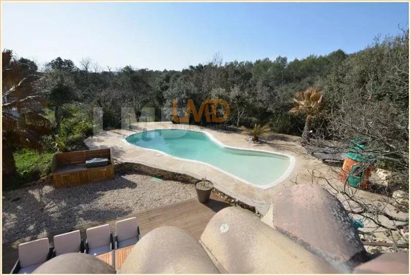 A l'extérieur, la vie coule doucement bercée par le chant des oiseaux, il est très facile de se projeter dans cette ambiance naturelle avec sa piscine en forme, ses arbres éclairés la nuit, la garrigue toute autour...un délice pour ceux qui aiment vivre tranquille sans vis-à-vis.