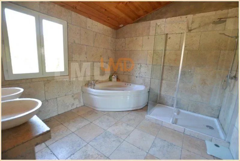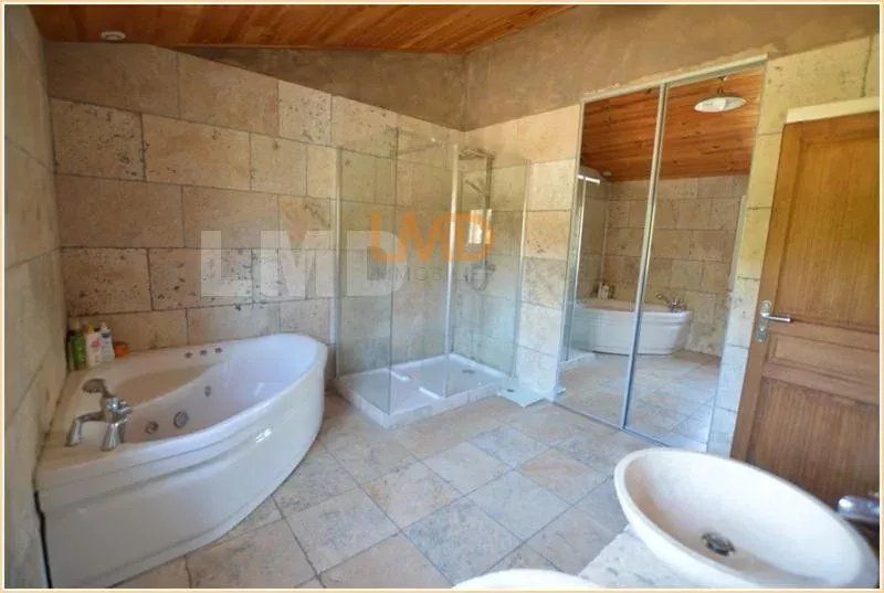 Une très belle salle de bain avec douche et baignoire et double vasque. WC séparé...
