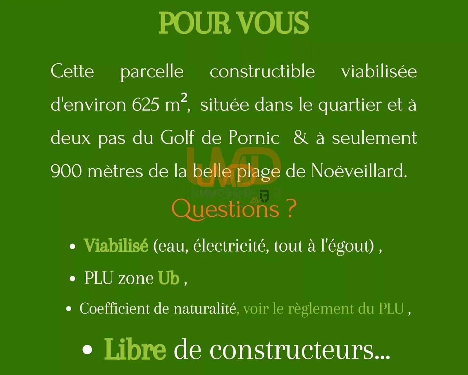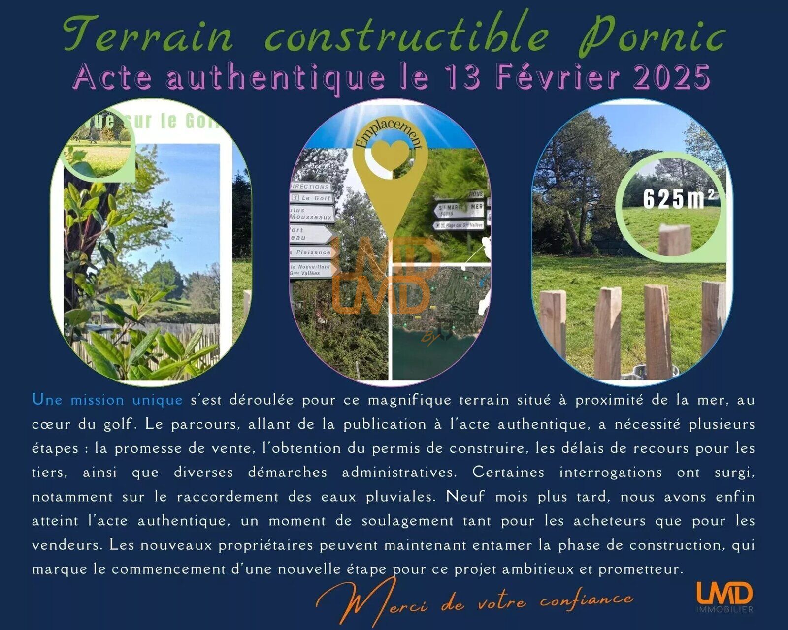 Acte authentique signé - Idéalement située, cette parcelle de 625 m² offre une vue sur le Golf de Pornic et permet un accès à la plage de la Noëveillard, à environ 900 mètres.