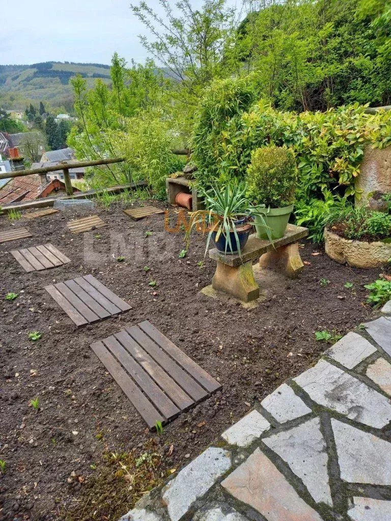 Le jardin de 386m² est fleuri et arboré avec une vue superbe dégagée sur les Palanges, un potager.