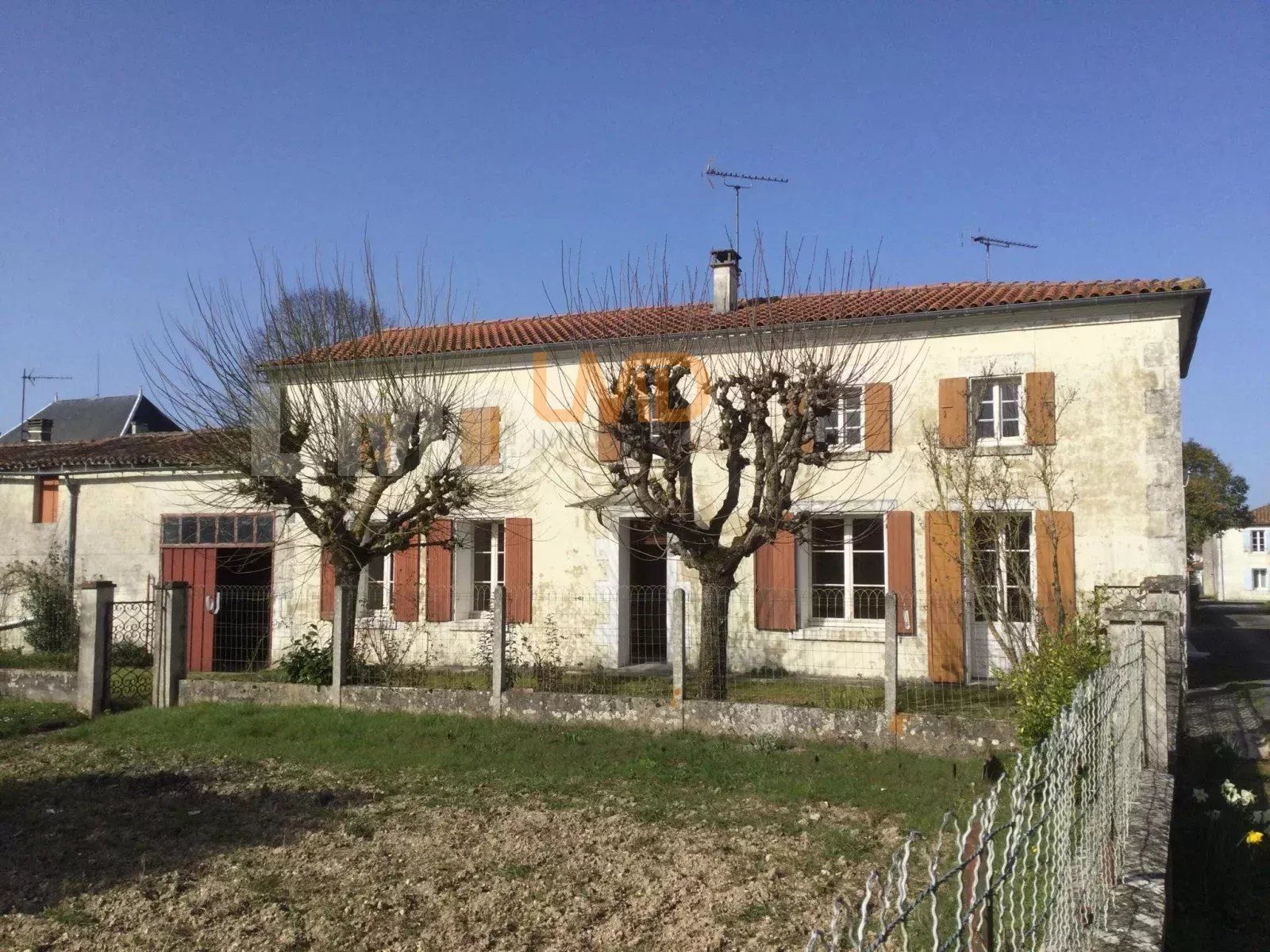 Maison à rénover située dans un secteur calme à 5 kms d'Aulnay, à 15 kms de St Jean d’Angély (accès A10), et à 45 kms au Sud de Niort et Gare TGV à Surgères (36 mns).
