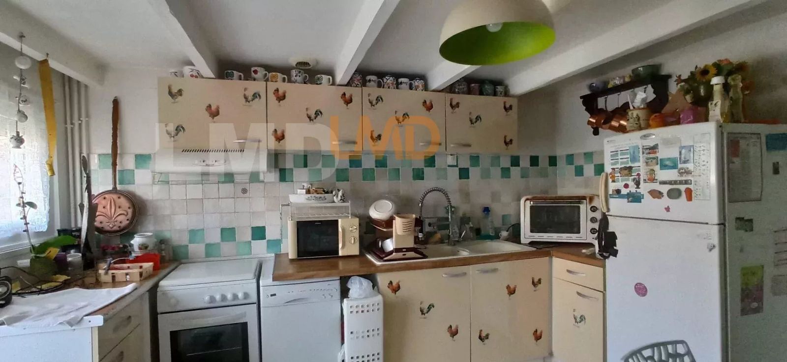 Cuisine fermée (avec son arrière cuisine), salle à manger / séjour, trois chambres, une salle d'eau, wc séparé.