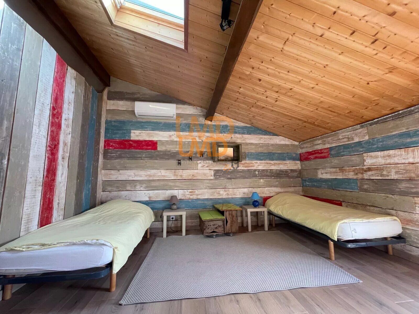 A l'étage, une grande salle de jeux pour les enfants avec couchages en mezzanine, 3 autres chambres, une salle de bains, et, une belle véranda lumineuse, offrant une vue magnifique sur la propriété.