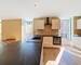 La cuisine moderne, au design épuré et fonctionnel, est ouverte sur le séjour et entièrement aménagée et équipée : réfrigérateur encastré, four, hotte design, plaques à induction, lave-vaisselle, nombreux rangements et plan de travail effet pierre foncée avec évier encastré noir et robinet chromé.