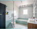 La salle de bain est équipée d'une double vasque, d'une baignoire et d'une douche.