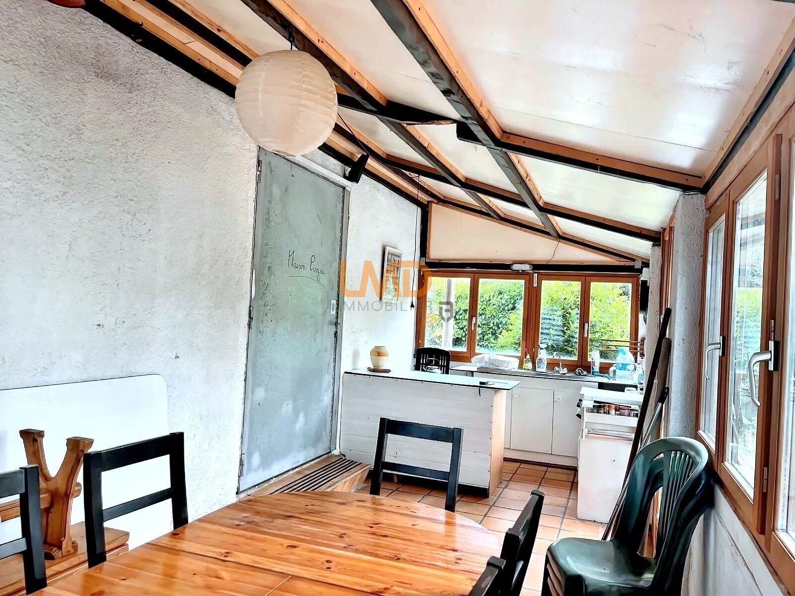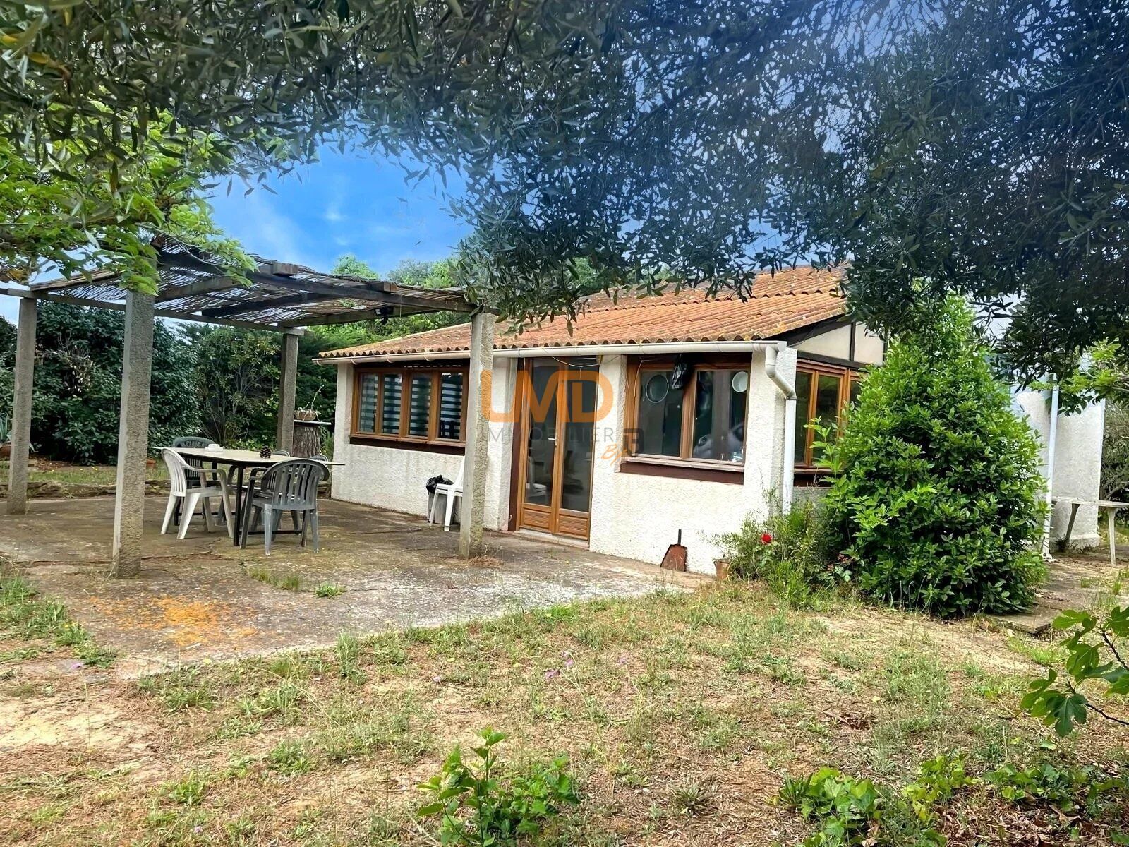 Mazet de 44 m2 sur un terrain naturel et arboré de 800 m2, composé de 3 chambres, pièce à vivre, salle d'eau-toilettes, véranda.