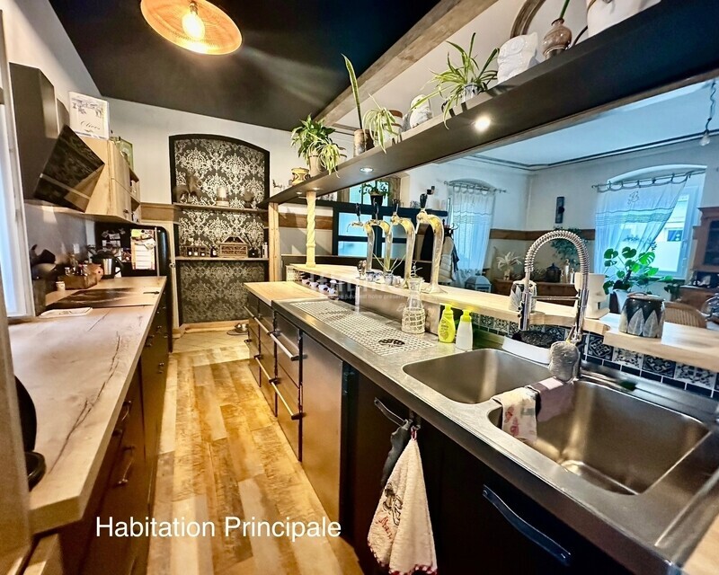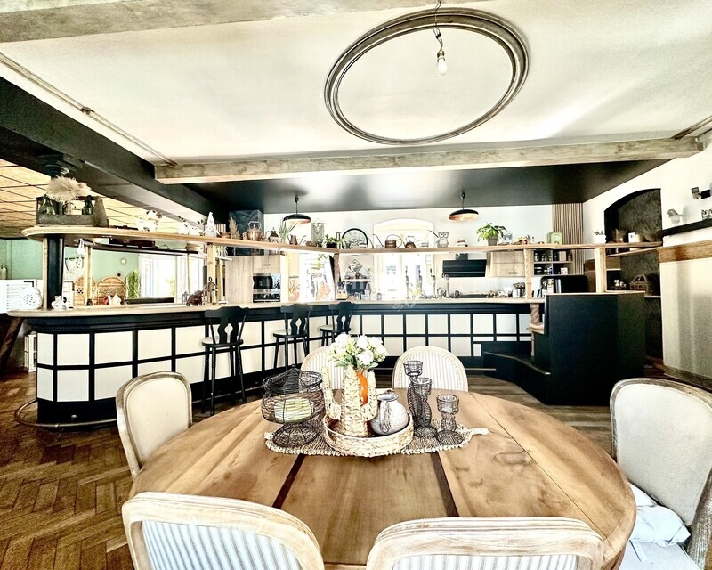 . Ancien bar restaurant réhabilité avec goût en un espace de vie loft chaleureux et original, une grande pièce de vie avec son bar authentique, cuisine sur mesure entièrement équipée,