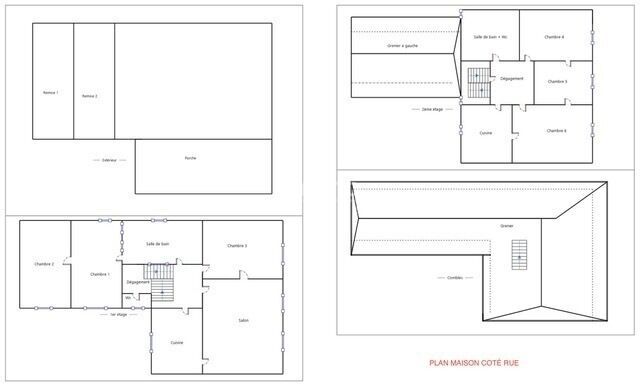Cet ensemble immobilier, donnant sur une cour intérieure privative, est composé de deux maisons d'habitation de 233 m2 et 64 m2 avec leurs combles aménageables, un espace de verdure rattaché à une des maisons, 3 remises de 11 m2 chacune et une grande cave de 46 m2. De grands travaux de rénovation sont à prévoir.