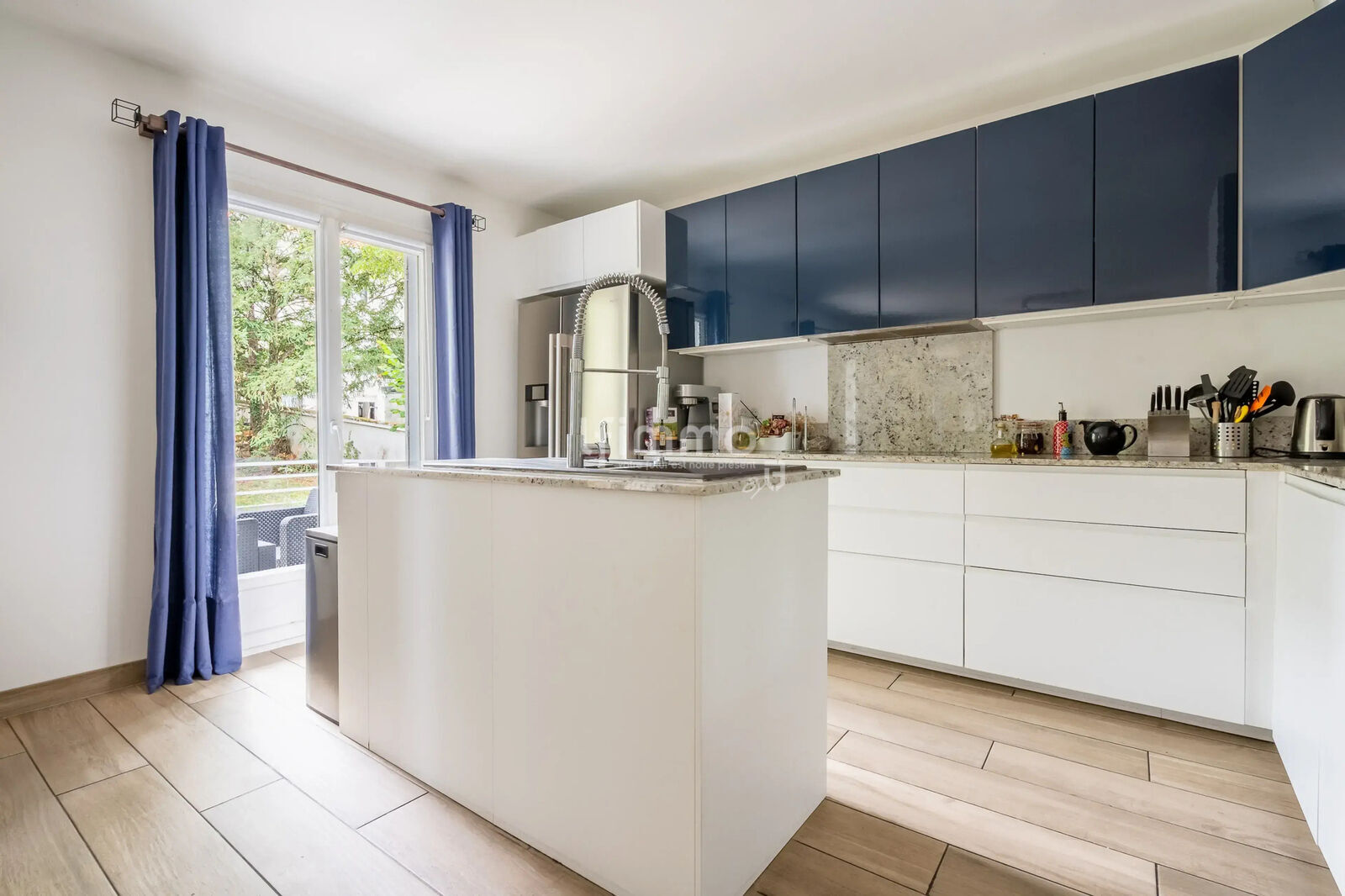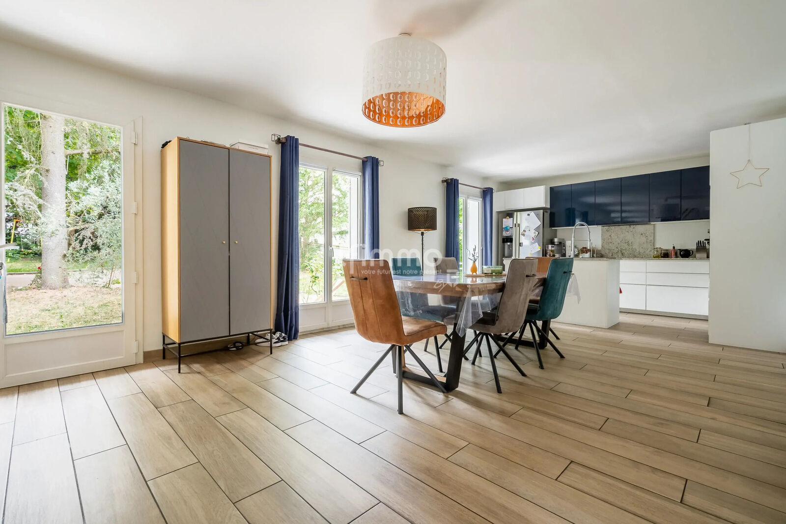 Au rez-de-chaussée, Une pièce de vie aux volumes décloisonnés vous offre près de 80m2, avec un espace détente, une cuisine ouverte équipée et son îlot central ainsi qu'un salon traversant avec sa Cheminée et vue directe sur le Jardin paysager et sa terrasse.