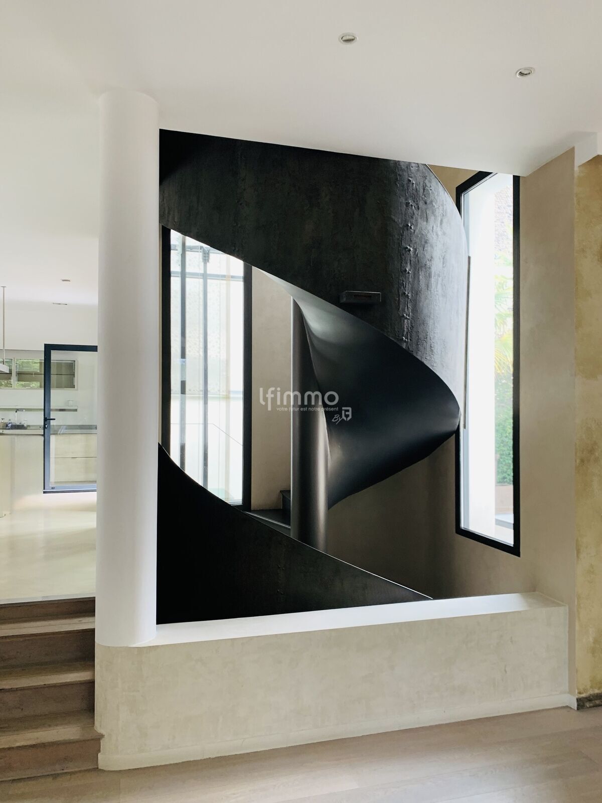 Le premier étage accueille une cuisine dînatoire ouverte sur une double réception séjour/salle à manger desservant un salon design accédant à une grande terrasse arborée avec soin et exposée plein sud.