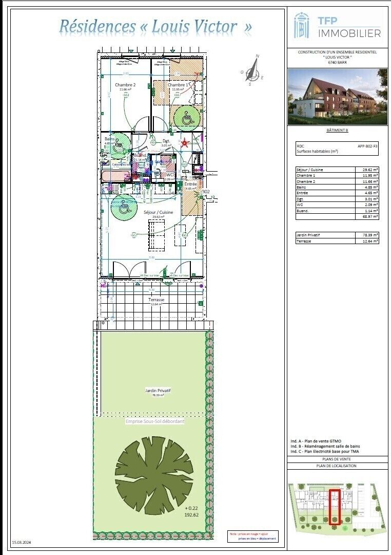 Magnifique appartement Neuf 3 pièces de 68 m² avec terrasse de 13 m² sud et jardin de 72m²