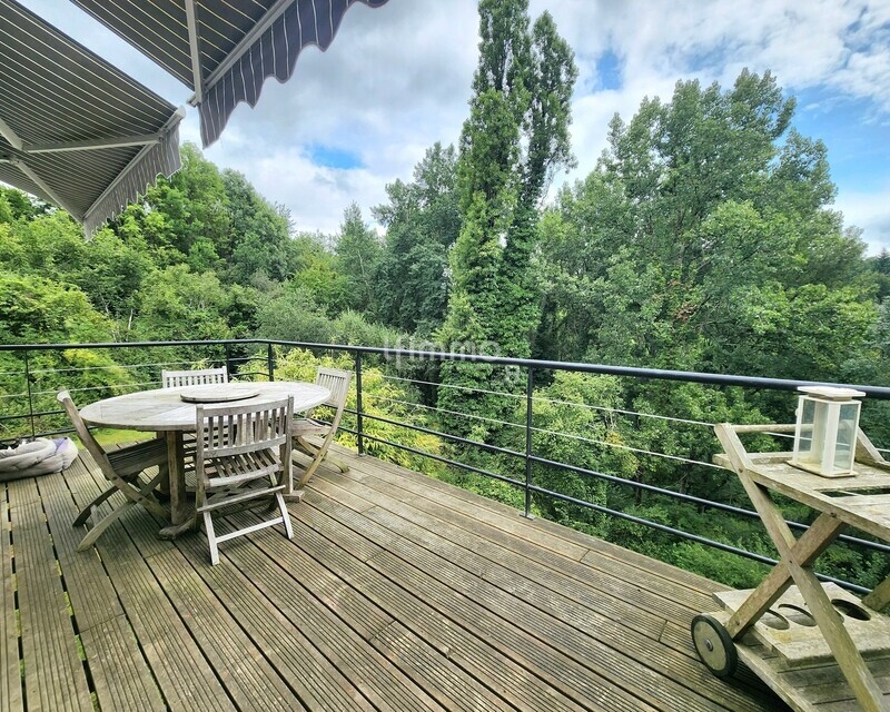 Ce niveau comprend également un WC séparé et donne accès à un balcon de 13 m² exposé Est, offrant une vue imprenable sur la forêt et le murmure apaisant de la rivière.