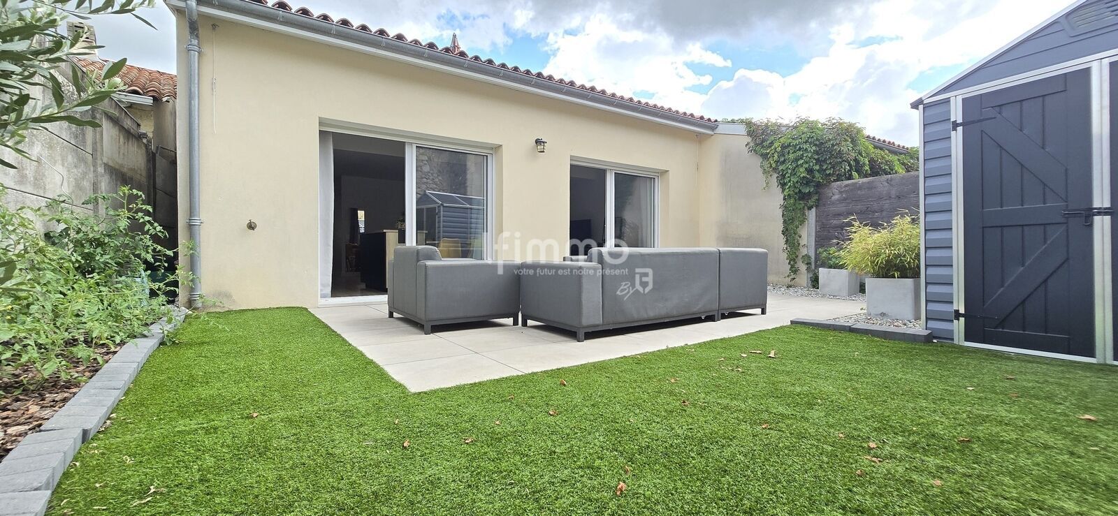 La pièce de vie de 44 m², baignée de lumière grâce à ses grandes baies vitrées, offre un espace chaleureux et fonctionnel, ouvert sur un jardin intime de 60 m², sans vis-à-vis, facile à entretenir et parfait pour profiter des beaux jours en toute sérénité.