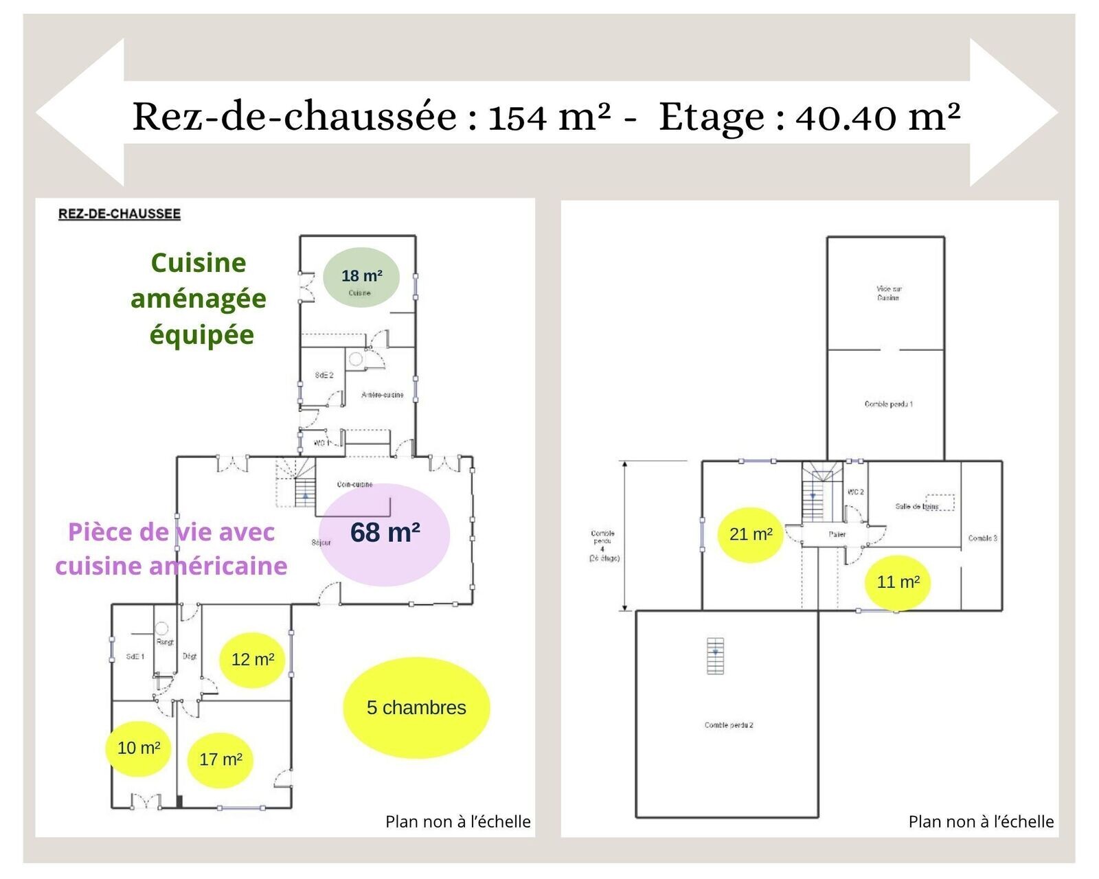 À l’étage, un espace plus intime, avec deux chambres supplémentaires, dont une de 21 m², une salle de bains, et un WC séparé.