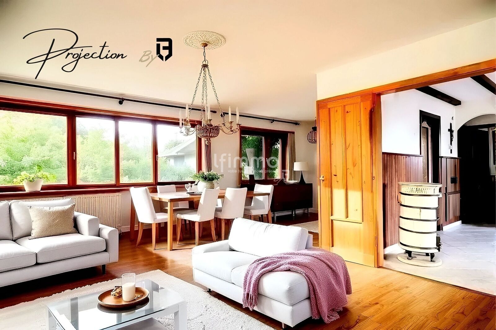 Située à Flaxlanden, charmante commune résidentielle à seulement quelques minutes de Mulhouse, cette maison de 1969 développe 154 m² habitables sur un terrain arboré de 686 m².