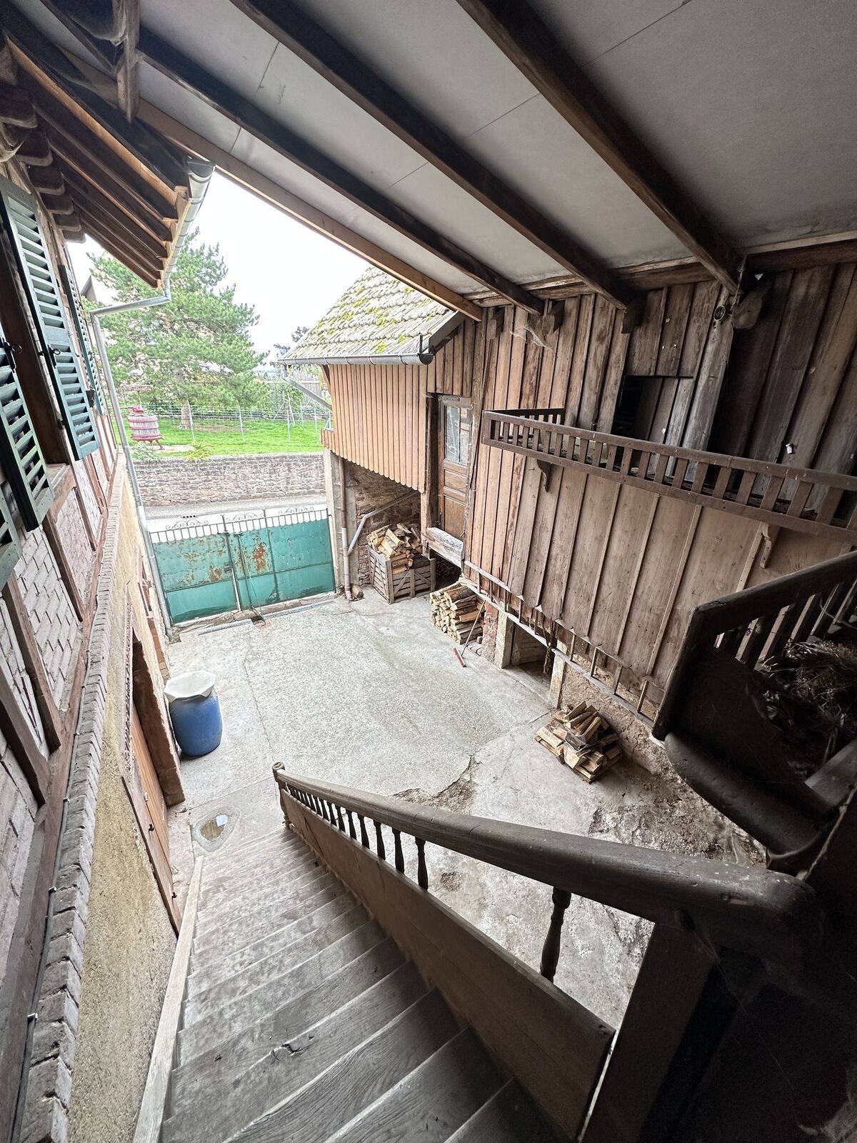 D'un coté cette belle maison alsacienne comprenant au rez- de -chaussée une cour intérieur, des caves, garage et ateliers puis en montant un escalier extérieur, nous avons la partie habitation sur 1 niveau : 1 hall d'entrée qui va desservir la cuisine entièrement équipée, 1 beau et grand salon-séjour, 3 grandes chambres et cette belle salle de bain totalement carrelée et aménagée( baignoire, douche, wc). Une terrasse de 50 m² donnant sur le village et le vignoble.