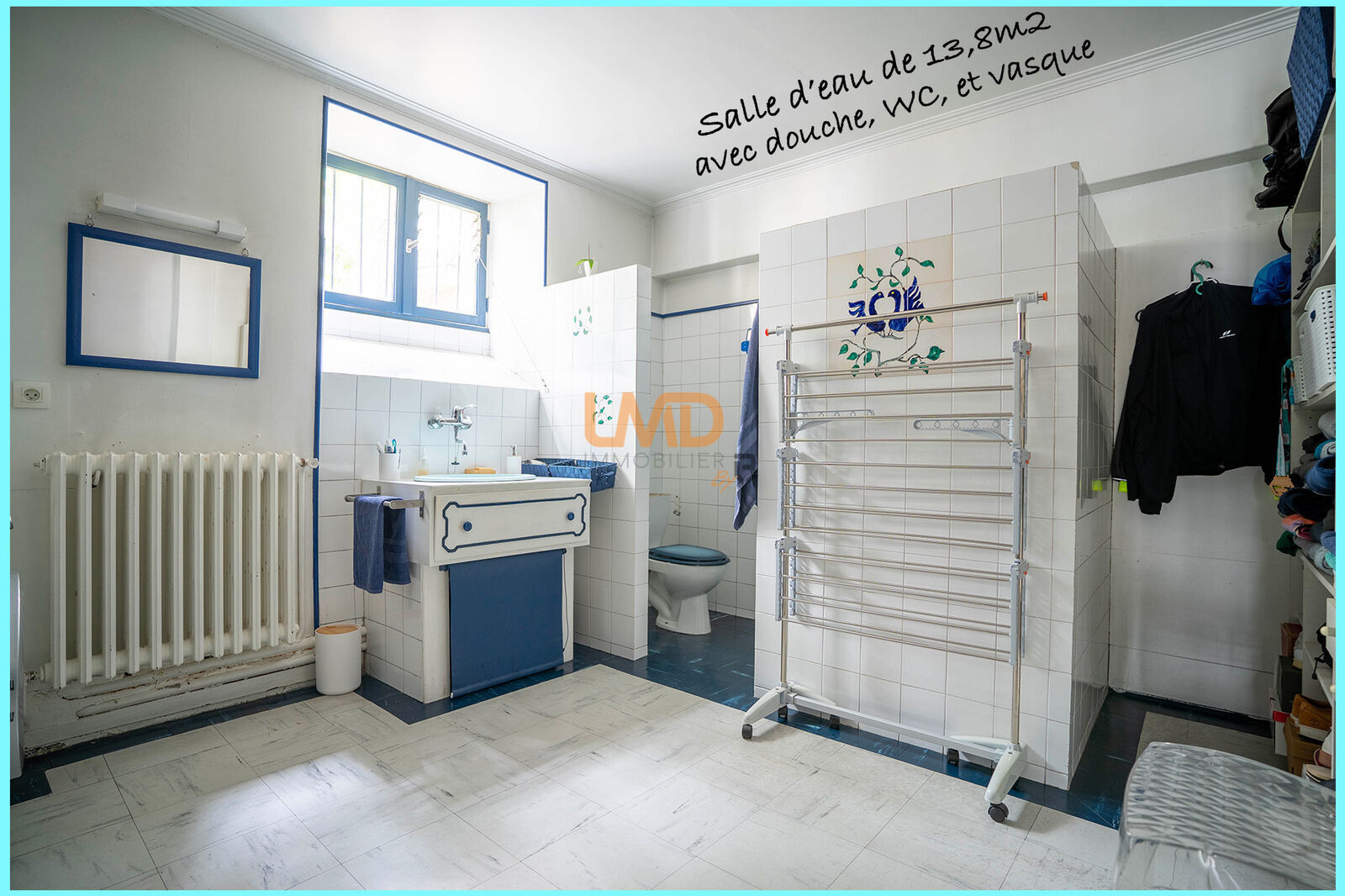 Une deuxième salle d'eau se trouve au rez-de-chaussée avec WC, douche et vasque.