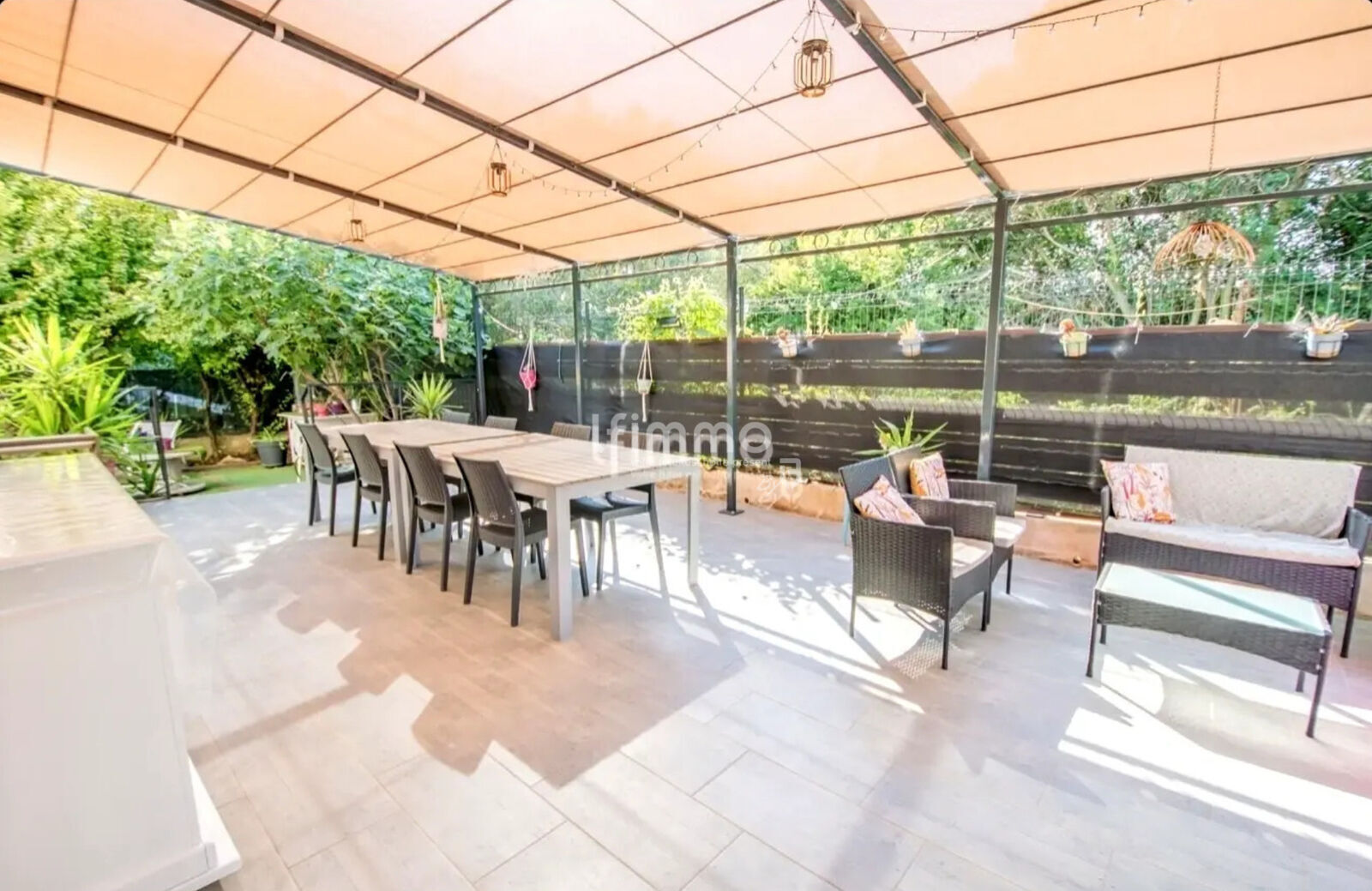 L'entrée lumineuse conduit vers le salon qui se prolonge naturellement vers la salle à manger et la cuisine parfaitement aménagée et équipée. Une buanderie attenante à la cuisine vient compléter l'espace. Cet espace de vie lumineux s’ouvre, par plusieurs baies vitrées, sur une grande terrasse de plus de 40 m² avec une pergola sur mesure en fer forgé, ainsi que sur le jardin avec un coin piscine (au sel), entièrement sécurisé. Une salle d'eau, ainsi qu'une pièce pouvant faire office de chambre ou de grand bureau vient compléter ce niveau.