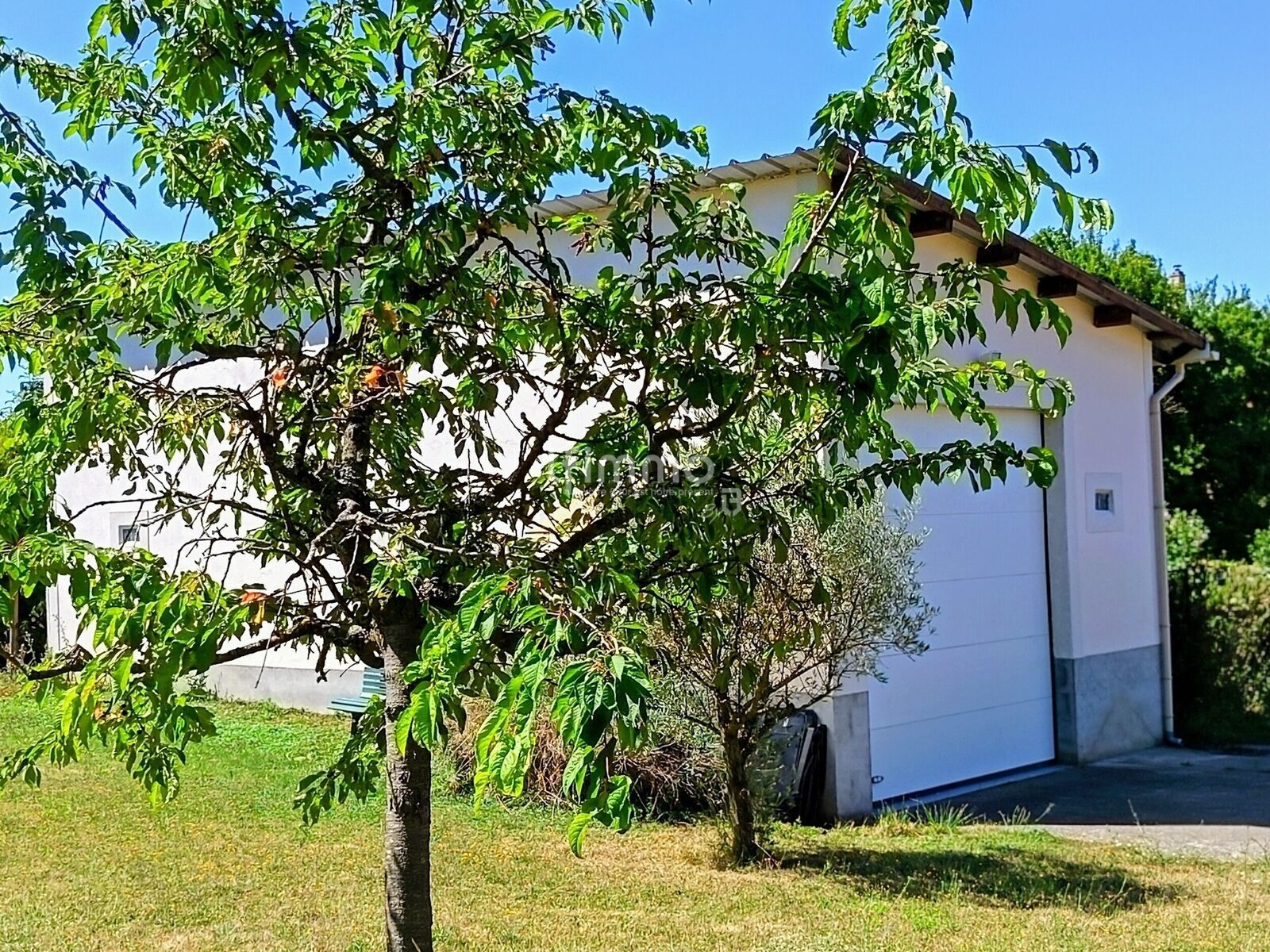 Terrain d'agrément de 816 m2 entièrement clos avec garage 63,80 m2 au sol construit récemment en parpaings pour abriter un très gros mobil home ou camping-car.
