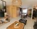 Spacieuse pièce de vie regroupant salon, séjour et cuisine ouverte, offrant un espace convivial et chaleureux, complété par un coin bureau idéal pour le télétravail et d’un