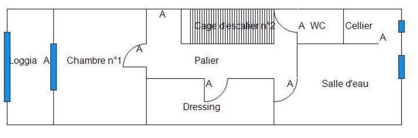 Au 1er étage : une belle chambre d’environ 13 m² avec sa loggia de 7,8 m², une vaste salle d’eau de près de 8 m² avec espace rangement, un dressing et des WC séparés.