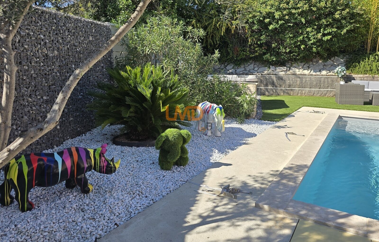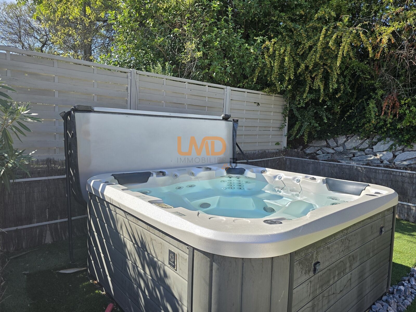 À l’extérieur, plusieurs espaces de détente vous attendent : une piscine 5x3 m avec nage à contre-courant, un SPA 5 places, une pergola et un jardin soigneusement aménagé avec arrosage automatique.