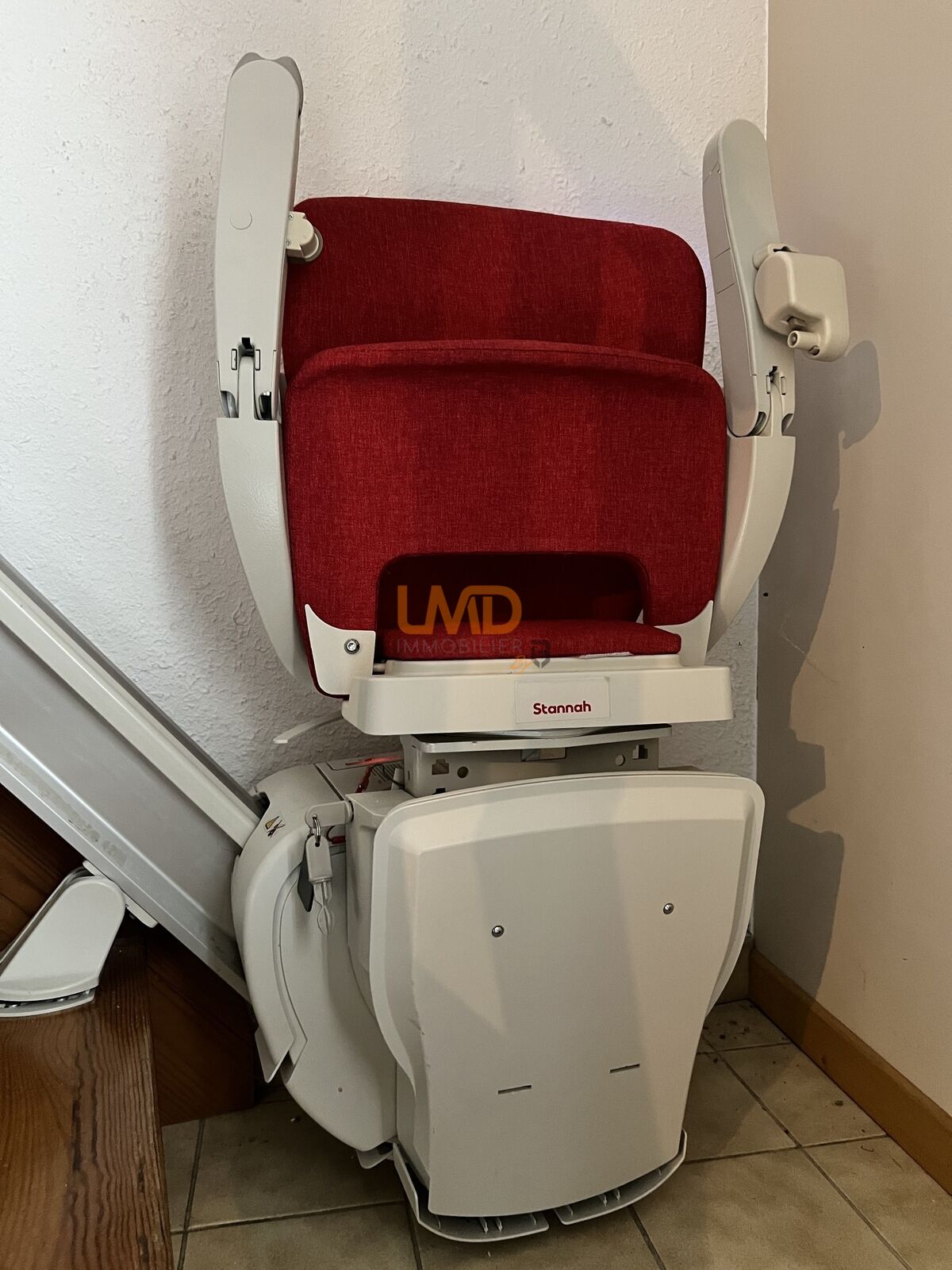 Vous serez séduit par le confort offert par le poêle à granulés, la climatisation réversible et le chauffage électrique, ainsi que le fauteuil monte-escalier (Stannah).