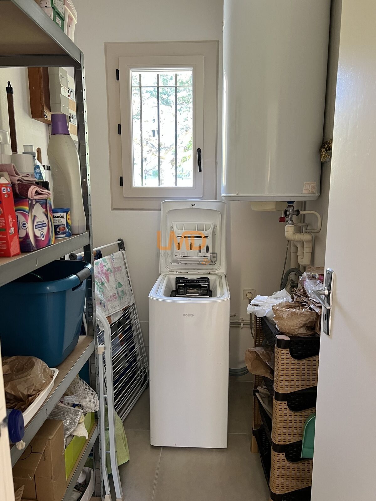 Elle offre un bel espace de vie confortable et ouvert sur une terrasse couverte de 12m2, une cuisine aménagée, deux chambres, une salle d'eau, un WC séparé, une buanderie ainsi qu'un garage, le tout soigneusement entretenu.