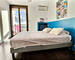 L’entrée conduit vers un salon, cuisine, salle à manger très lumineux et spacieux, qui s’ouvre sur un extérieur. Le coin nuit comprend deux chambres avec balcon et une salle d’eau.