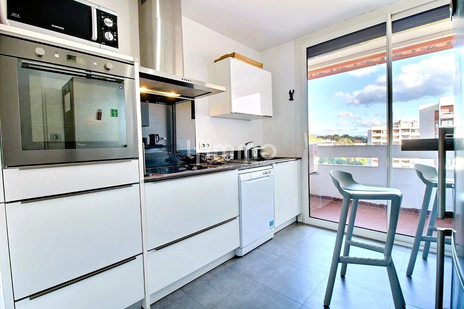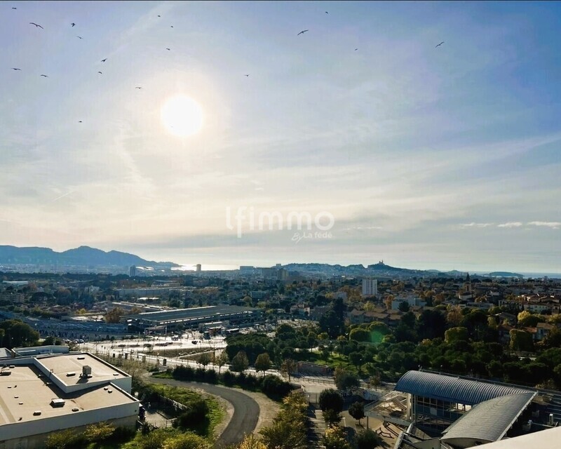 C’est dans le 12e arrondissement de Marseille, à côté du métro La Fourragère, terminus de Saint-Barnabé, que se situe cet appartement de plus de 76m2, dans une résidence fermée, avec espaces verts et parkings . Au dernier étage d’un immeuble avec ascenseur, il bénéficie d’une vue panoramique sur toute la baie de Marseille.