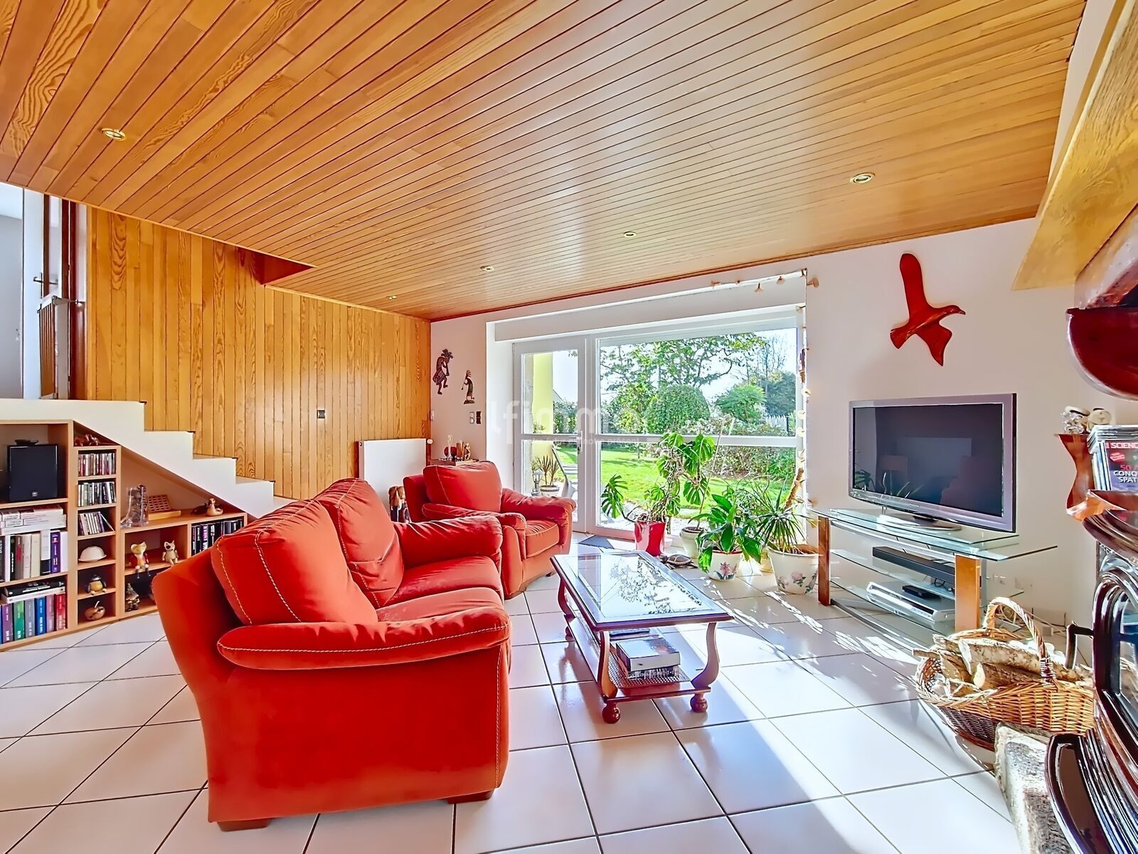 La maison offre un espace de vie chaleureux et bien entretenu, combinant le confort du chauffage au bois et la performance d’une pompe à chaleur.