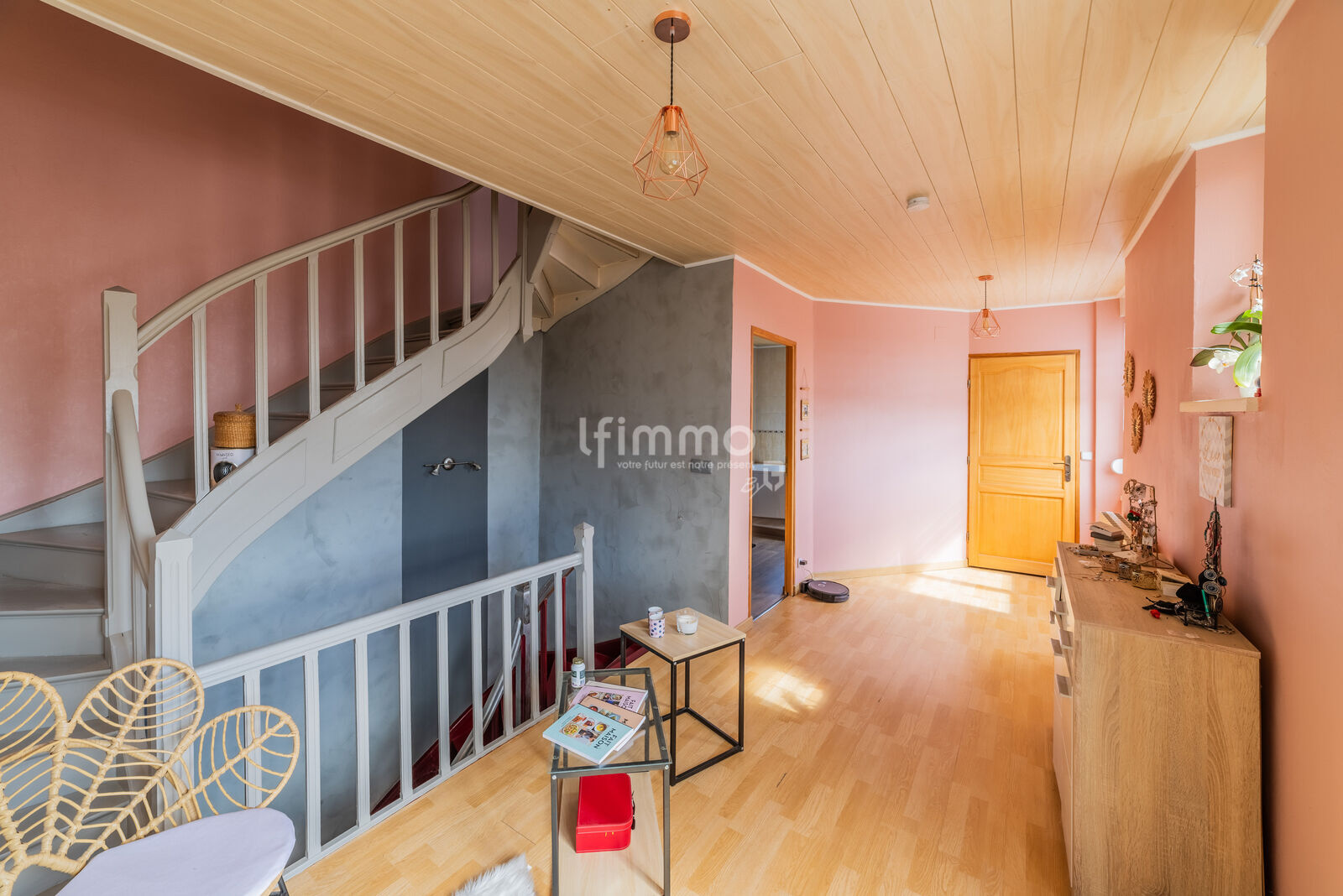 En Rez-de-Chaussée, après avoir accéder à une belle entrée, on distingue 🍽️ la Cuisine, bien aménagée, accompagnée d'un coin repas. La pièce de vie 🛋️ , séparée et bien agencée, proche du poêle à pellets🪵 .