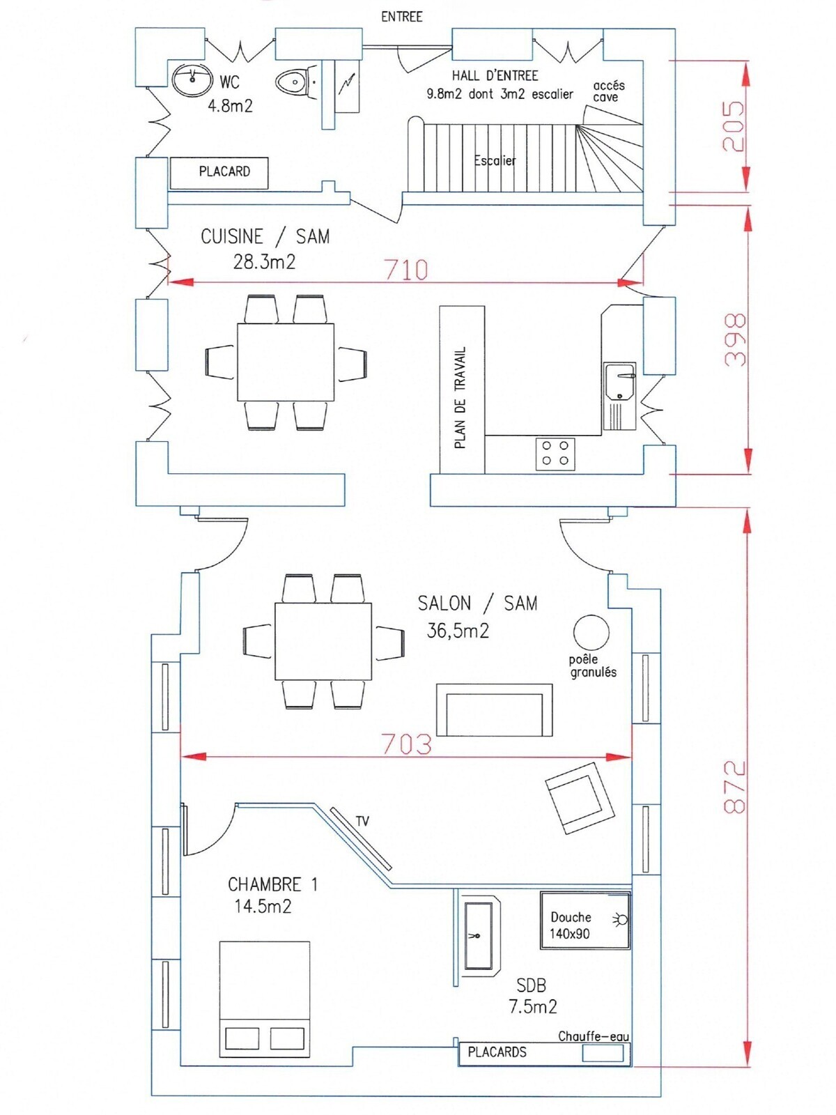 Belle cuisine aménagée et équipée (28 m²), où l’on partage facilement des repas en famille ou entre amis dans une atmosphère conviviale