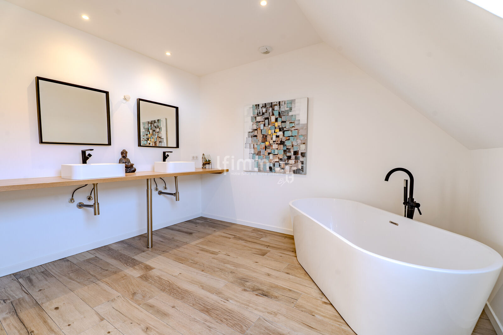 Une suite parentale de plus de 18m² avec salle de bain et un toilette avec lave mains se situent également au rez-de-chaussée.