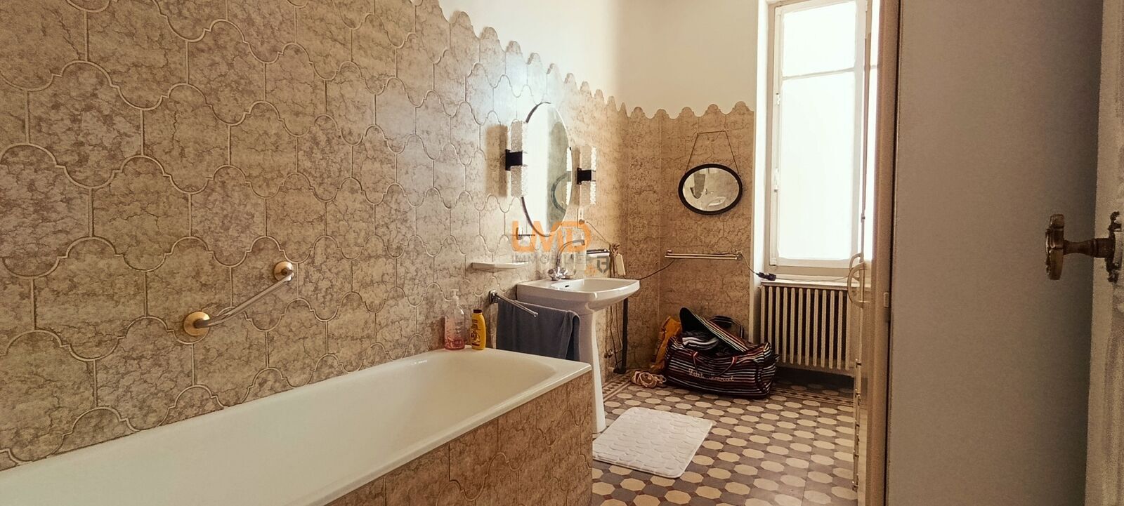 À vendre à Molières Sur Cèze, France, ancienne maison bourgeoise des années 30 de 192m² sur un terrain de 376m². Avec 9 pièces spacieuses dont 5 chambres. La maison est équipée d'un chauffage moderne à pompe à chaleur air/eau.