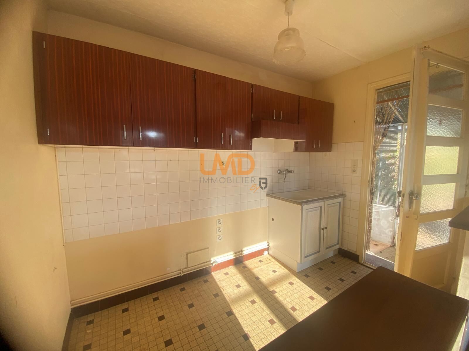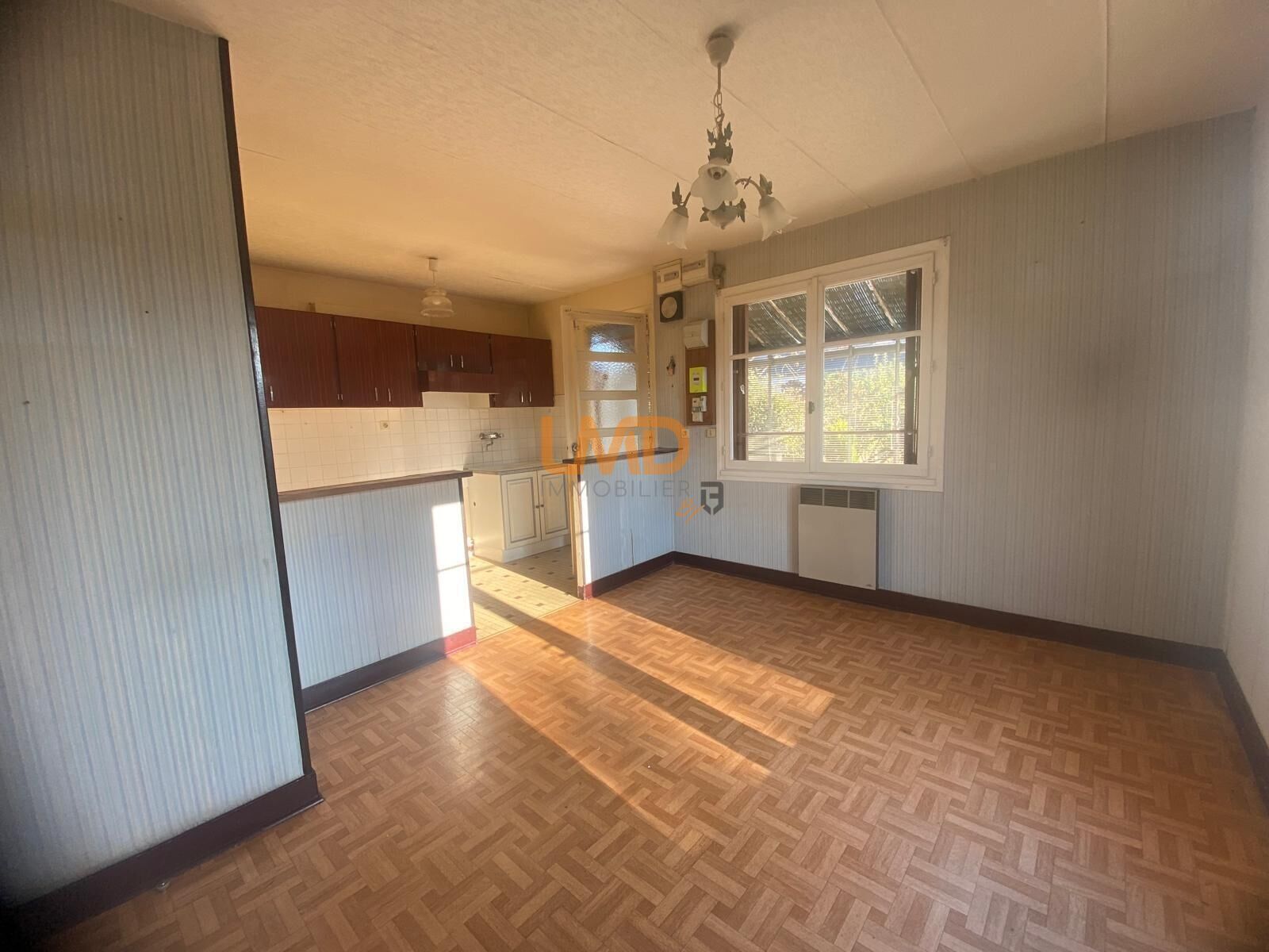 Maison de plain-pied proche du centre de Mondoubleau qui se compose d'une véranda, d'un séjour avec une cuisine ouverte, de deux chambres, d'une salle d'eau, WC.