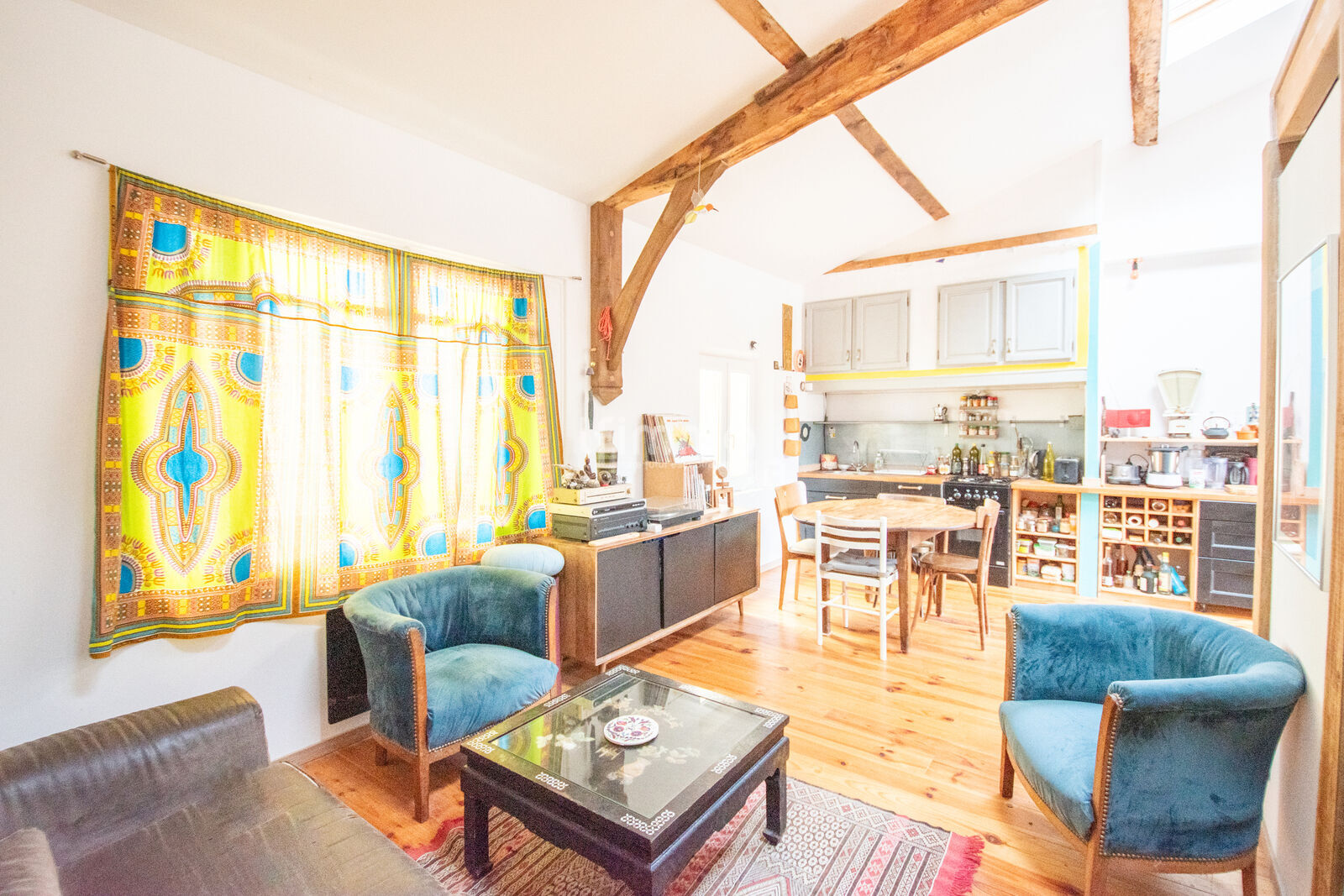 À l’étage, un bel espace traversant et lumineux de plus de 25 m² accueille le salon et sa cuisine ouverte.