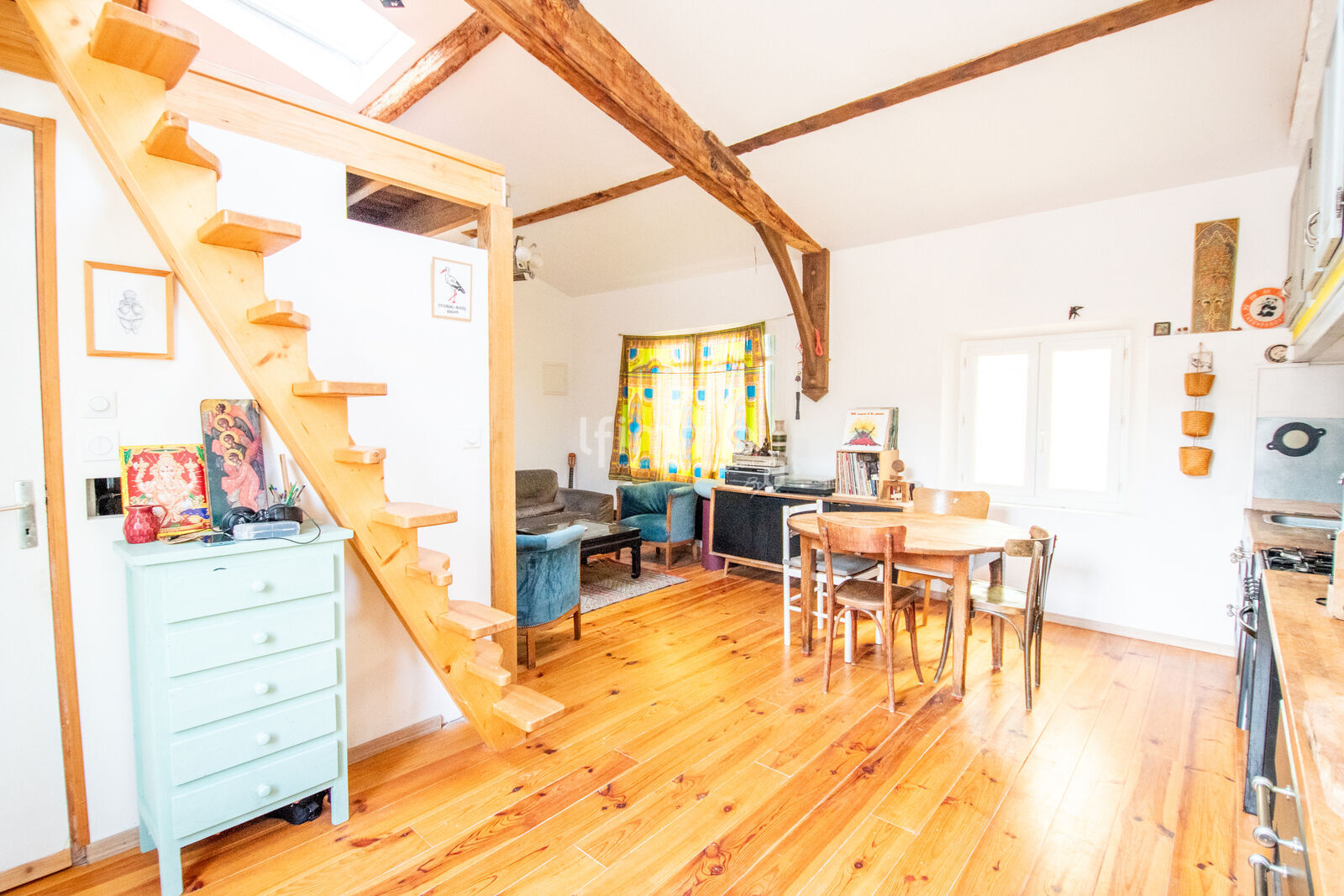 Vous serez séduit par les pierres apparentes d’origine qui ornent les murs de l’escalier, apportant charme et authenticité à l’ensemble.