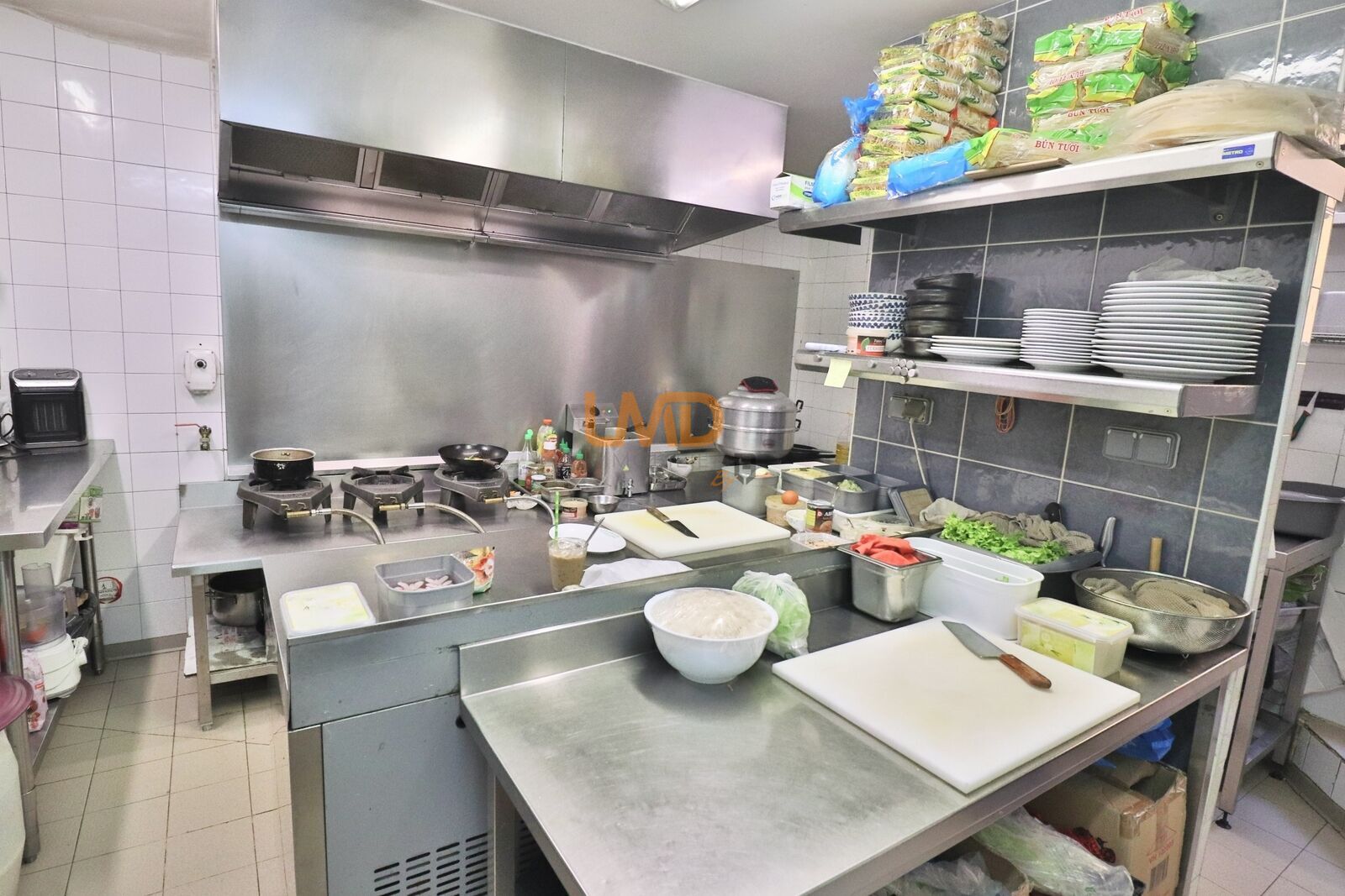Salle idéale pour minimum 30 à 40 couverts, cuisine entièrement équipée avec extracteur et porte arrière pour les livraisons, wc PMR, bar pour accueil et caisse.