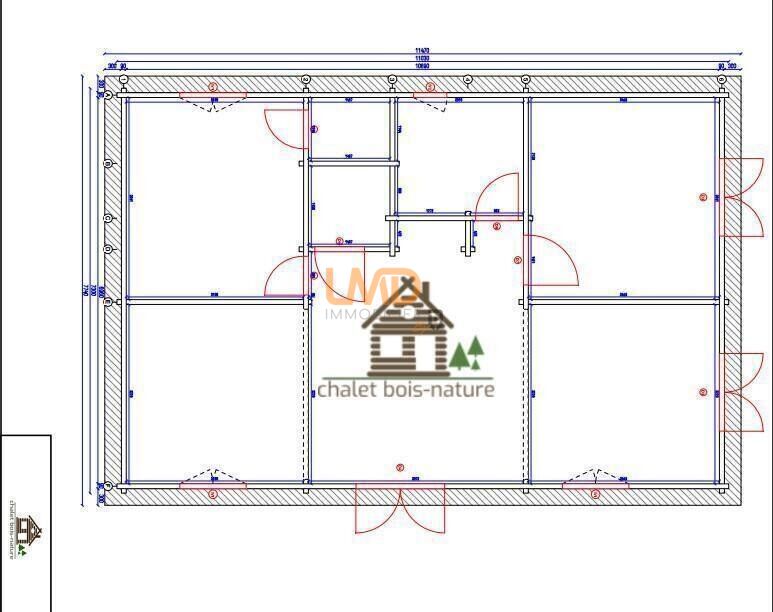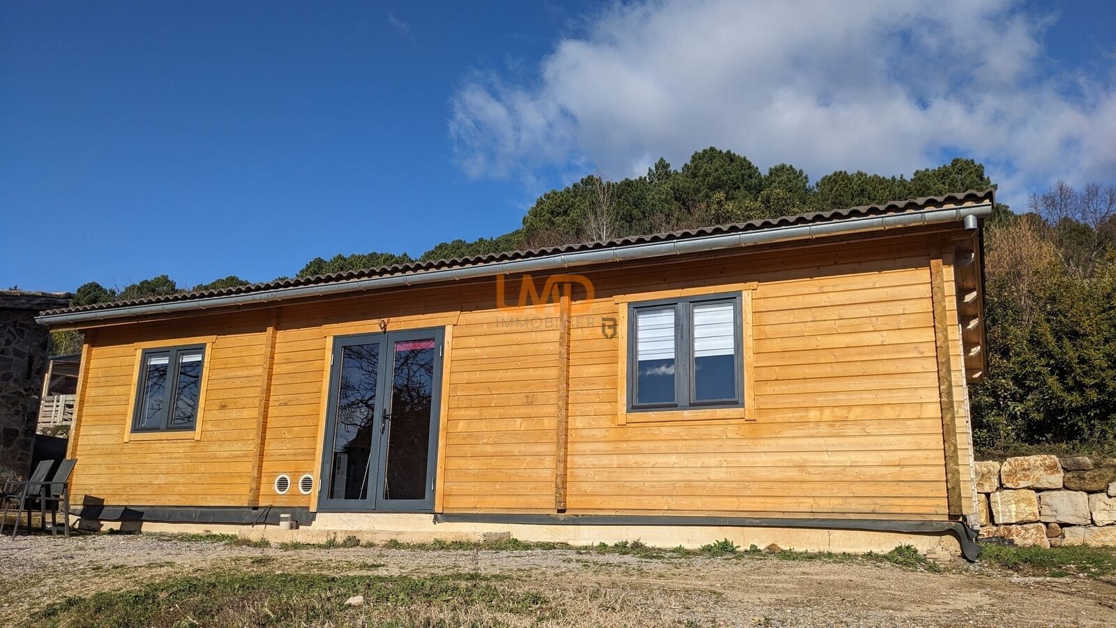 Maison d’habitation type chalet en madrier toiture traditionnelle renforcée de 75m2 sur un terrain de 730m2.