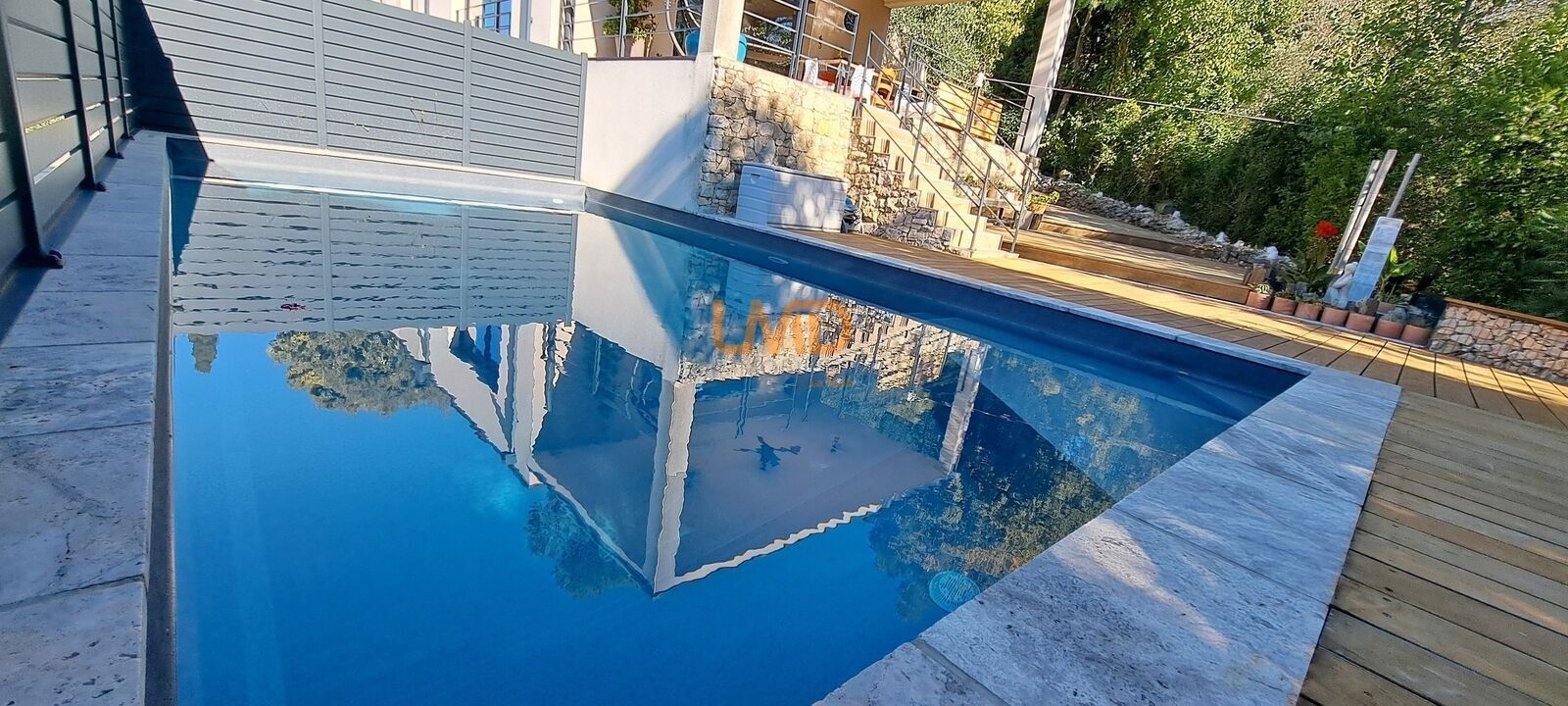 Le séjour s’ouvre sur une cheminée conviviale, parfaite pour les soirées d’hiver. La cuisine américaine invite à la créativité culinaire dans un espace fonctionnel, la buanderie est attenante. Profitez d’une terrasse orientée plein sud, avec vue sur la piscine à l'ambiance zen pour des moments de détente ensoleillés. Le chauffage par pompe à chaleur assure un confort thermique performant et économique. (très bon classement énergétique). L’accessibilité aux personnes à mobilité réduite complète les prestations de cette villa contemporaine. Tout le terrain est aménagé, paysagé, arrosage automatique, éclairage, boulodrome, cuisine d'été, four, balançoire...il ne manque rien. Quant au garage de 52m2, il est d'un confort incroyable avec son isolation, sol carrelé, rangement, avec un accès direct depuis la maison. S'ajoute le stationnement en plus devant le garage.