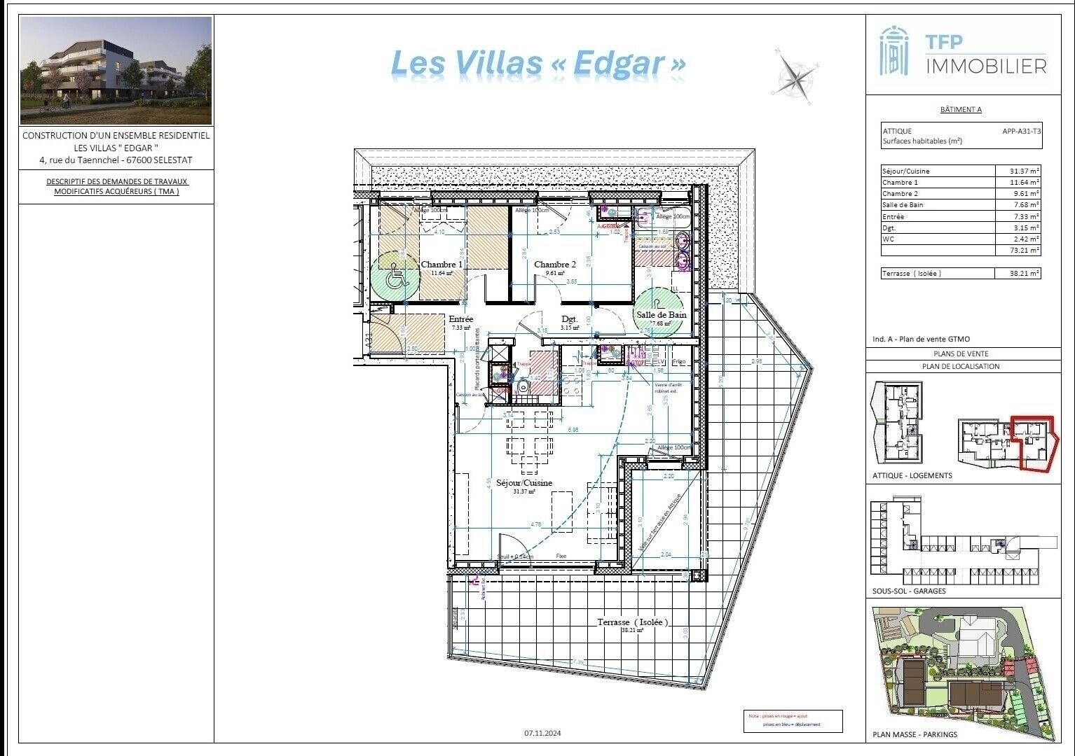 la performance énergétique est optimisée et répond aux dernières normes environnementales (RE2020). Des garages en sous-sol et des emplacements de parking sont disponibles.