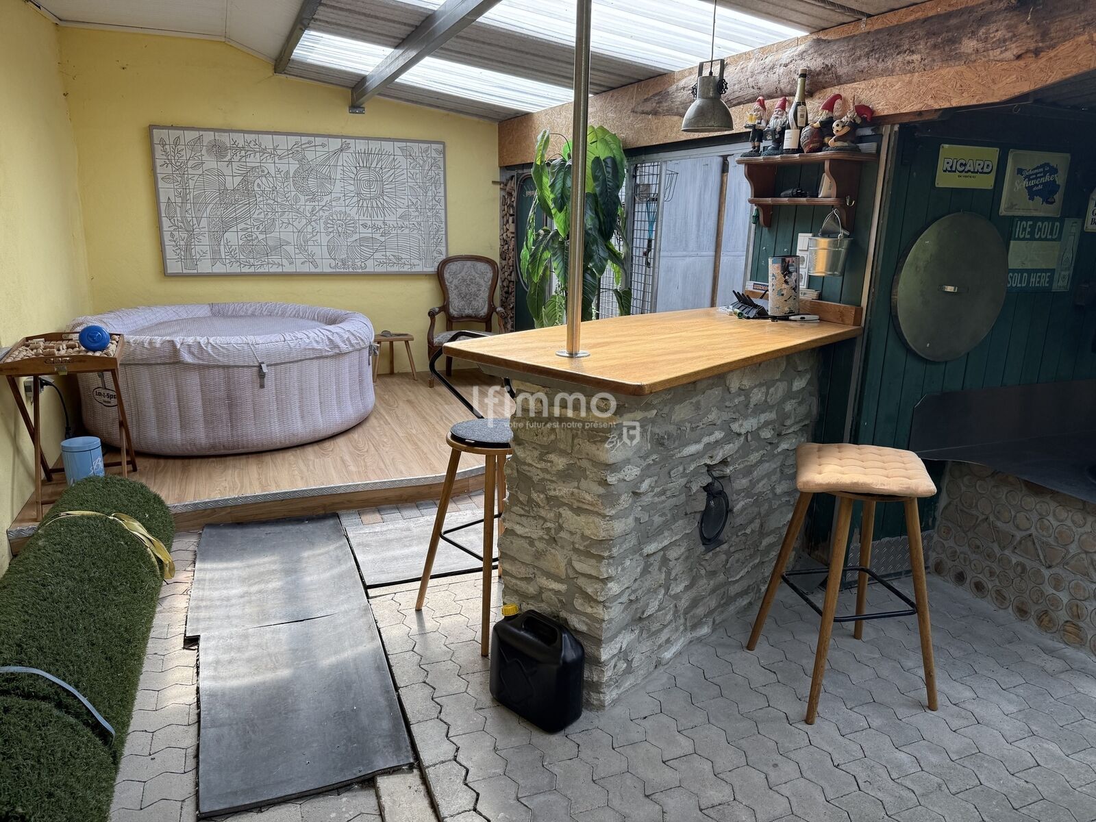 Cuisine d’été attenante, offrant de nombreuses possibilités d’usage (réception, espace convivial, buanderie, etc.)