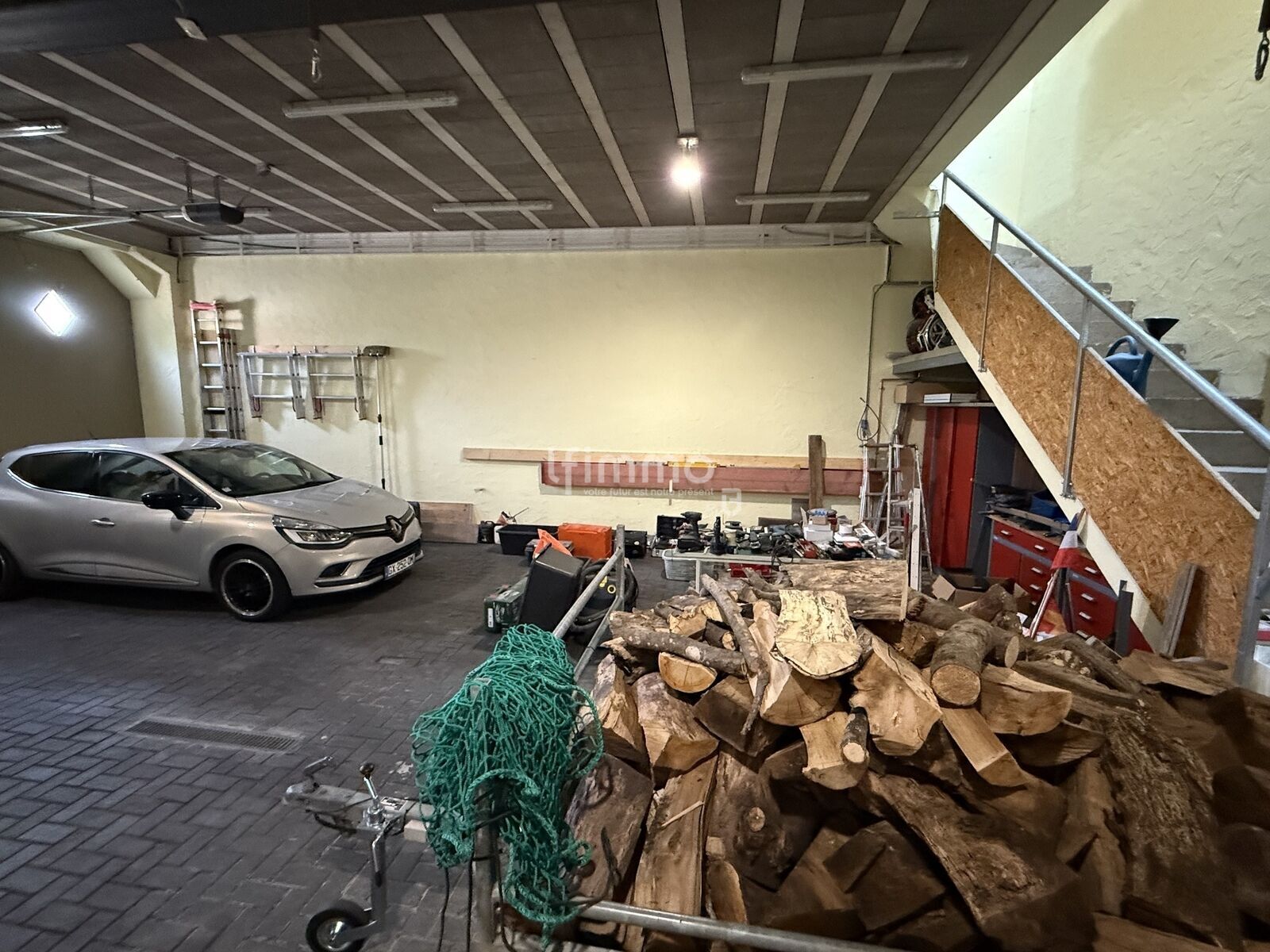 Grand garage, idéal pour stationner ou aménager, un atelier.