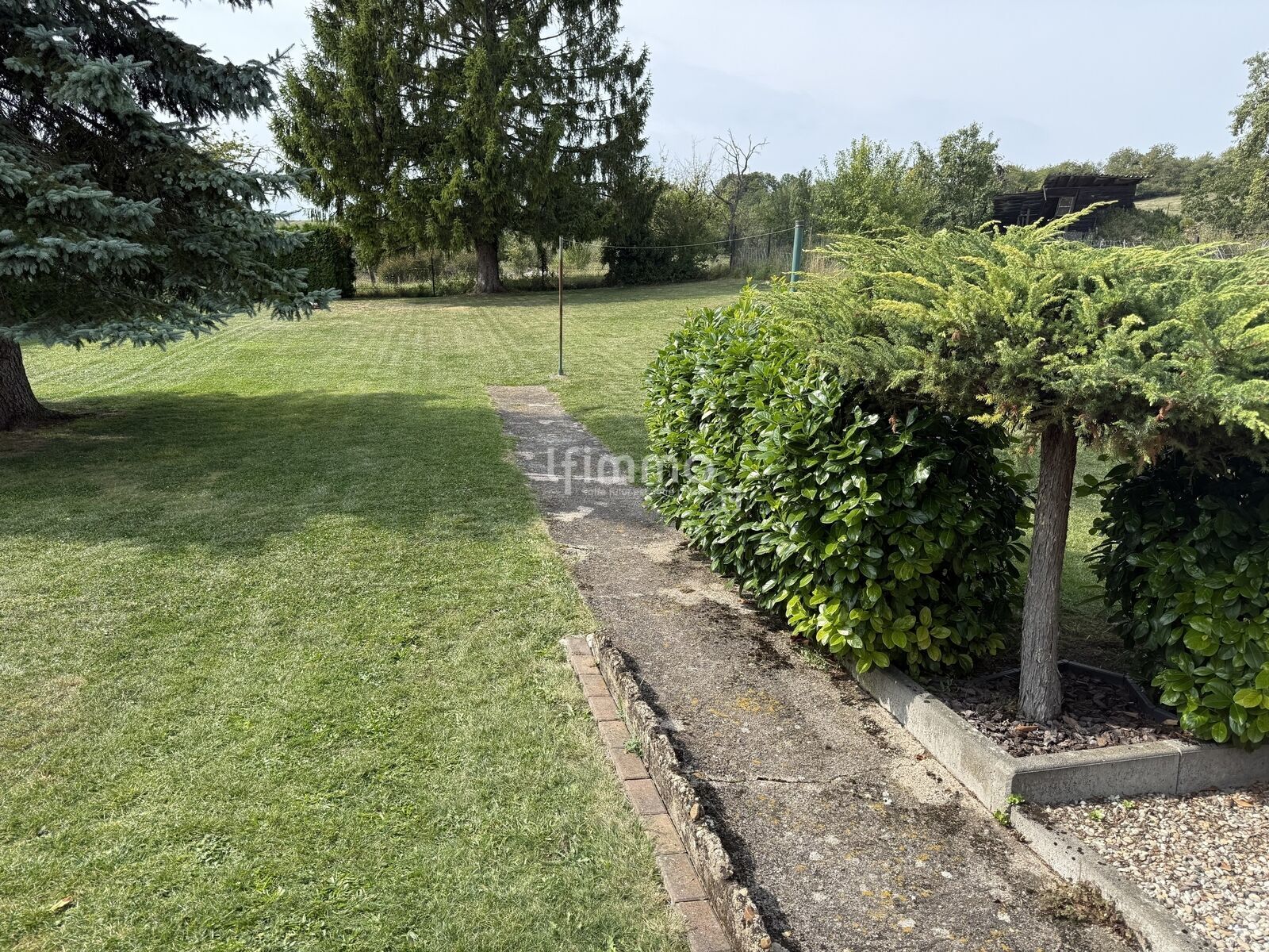 Jardin arboré avec terrasse, terrain suffisamment vaste pour agrandir, aménager une piscine ou un potager